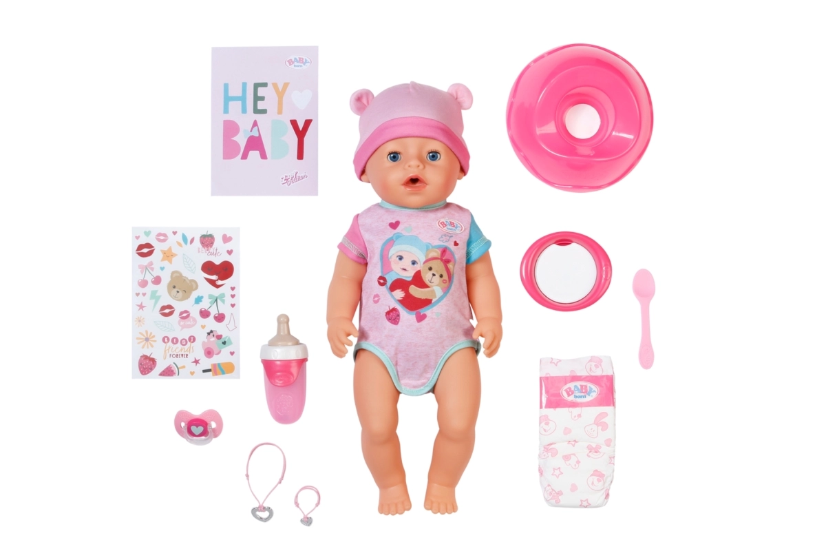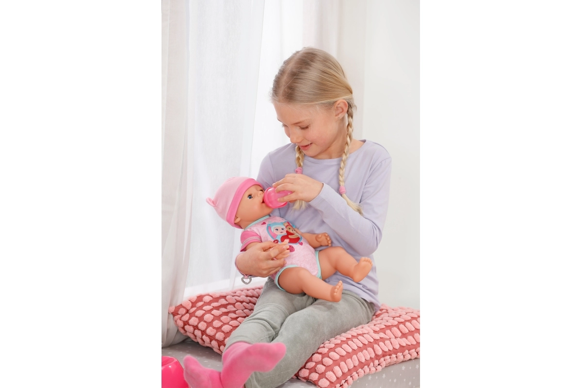 - Realistiškos funkcijos be baterijų – geria, verkia, mirksi ir šlapinasi.