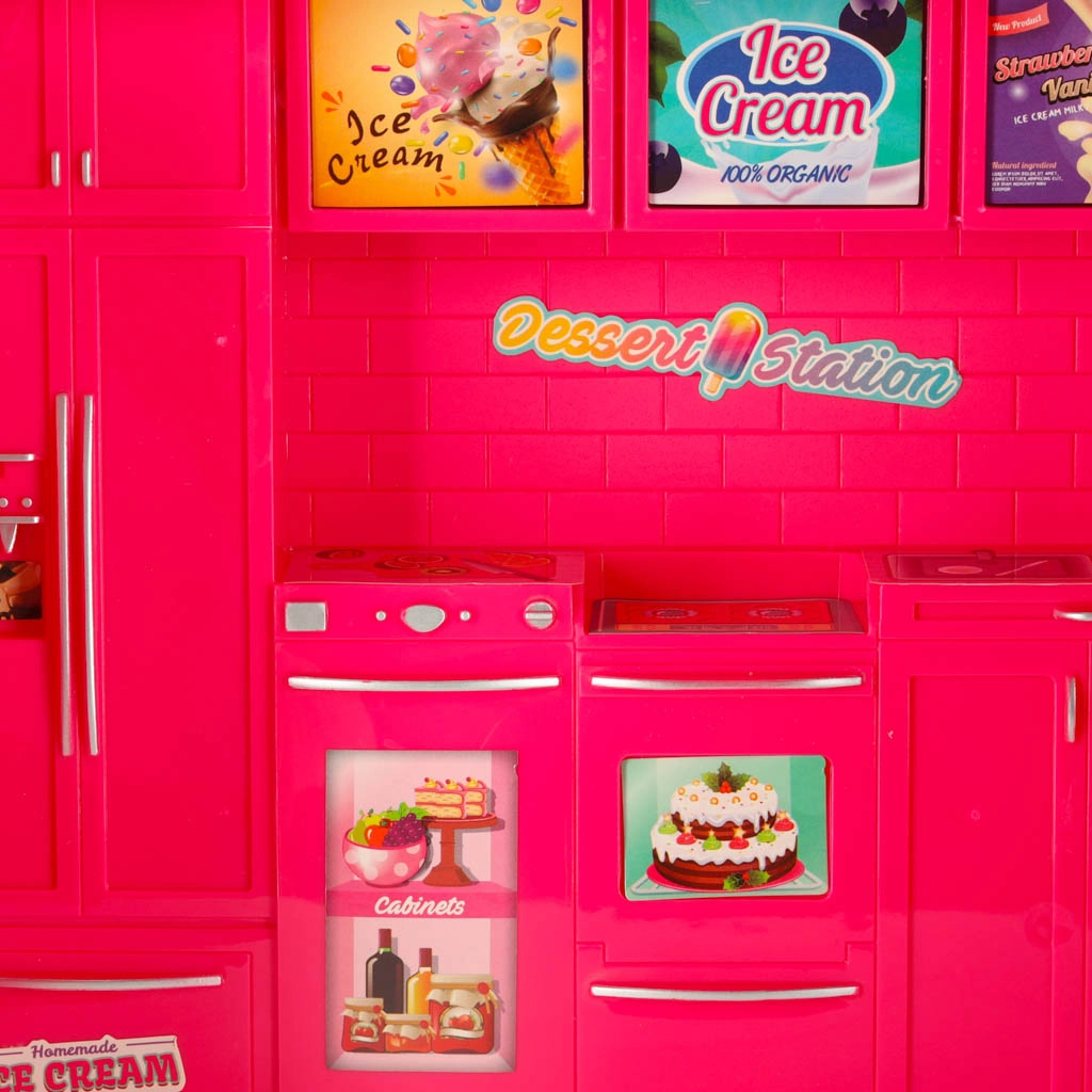 Rinkinyje yra lėlė, stalas, dvi kėdutės ir daugybė smulkių aksesuarų, kurie suteikia įvairių žaidimo galimybių ir skatina vaikų fantaziją.