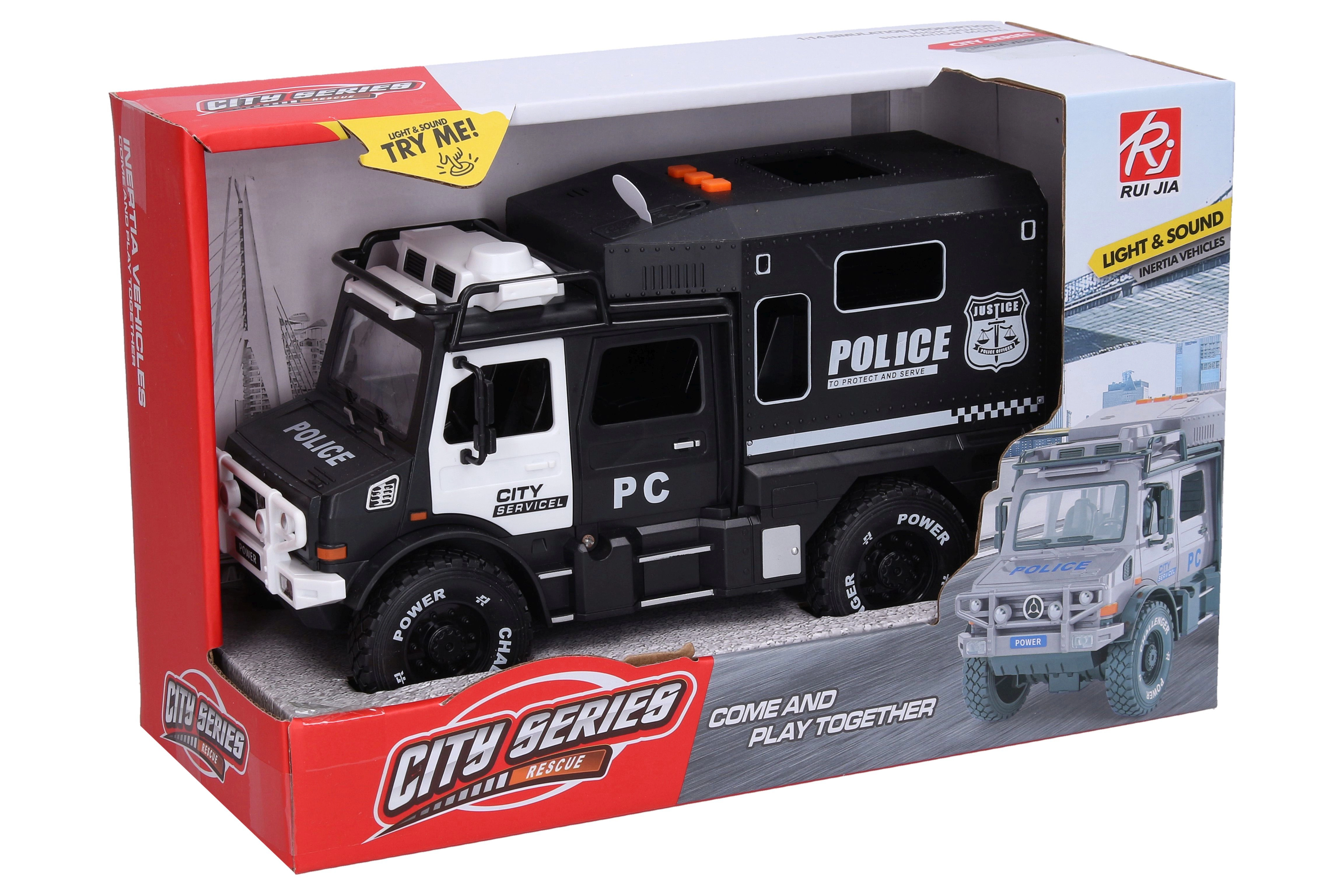 Pristatome policijos automobilį su plačiu efektų spektru, kuris sužavės kiekvieną mažą gerbėją. Modelis siūlo:
