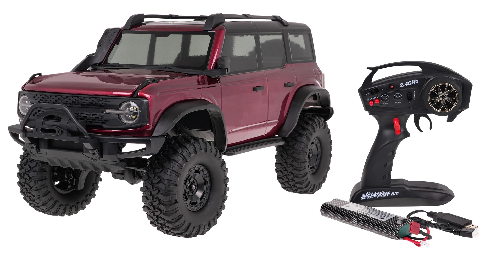 - pilnas RTR komplektas: 7,4 V akumuliatorius ir USB įkrovimas, tereikia pridėti 4× AA į valdiklį