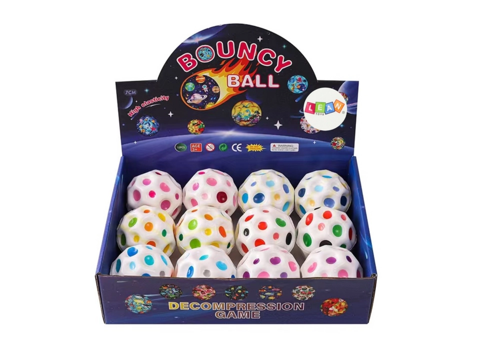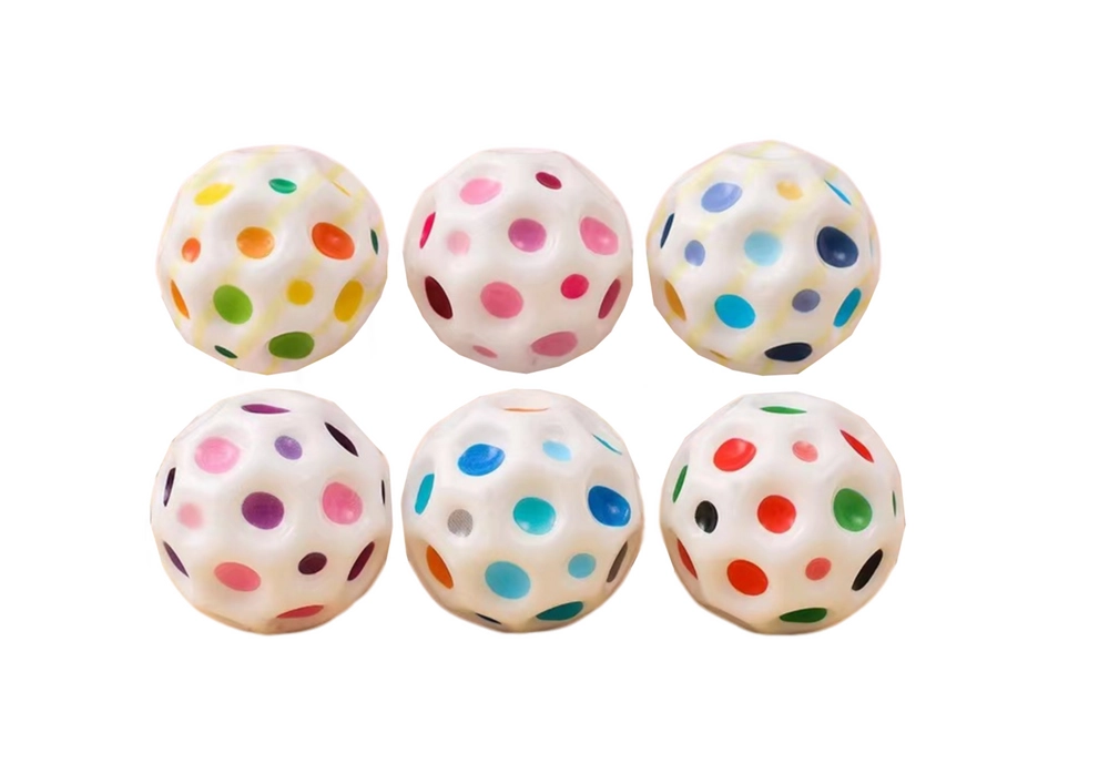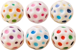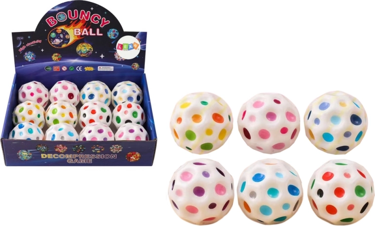 Linksmas kosminis kamuoliukas baltos spalvos su spalvotomis įdubomis suteikia greitus atšokimus, galimybę spausti sensoriniam nusiraminimui ir puikų smagumą vaikams bei suaugusiesiems. Dėl 7 cm skersmens puikiai tinka namuose ir lauke, lavina smulkiąją motoriką ir koordinaciją.