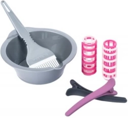 Dubenėlis, teptukas, segtukai ir bigudžiai padės įsijausti į „dažymą“ ir šukuosenų formavimą. Saugiai ir be netvarkos.