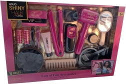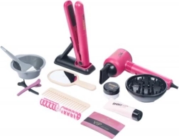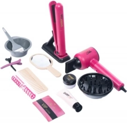Skatinkite kūrybiškumą ir vaizduotę su šiuo 16 dalių kirpimo rinkiniu vaikams. Jame rasite baterijomis maitinamą plaukų džiovintuvą, plaukų tiesintuvą, šukas, segtukus ir bigudius, veidrodėlį ir priemonės plaukų dažymui – viską realistiškam grožio salono žaidimui.