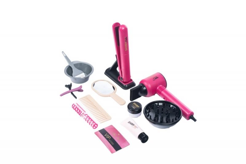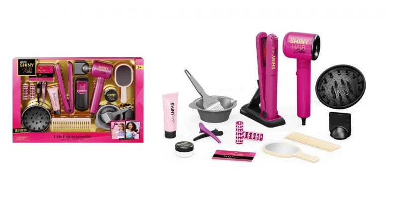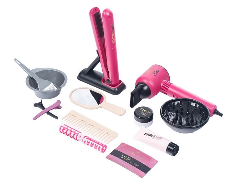 Šis gausus vaikiškas kirpimo rinkinys suteikia mažosioms stilistėms viską, ko reikia žaidžiant tikrą saloną. Dėl veikiančio, baterijomis maitinamo džiovintuvo ir viso priedų komplekto vaikai gali saugiai ir linksmai mėgdžioti plaukų formavimą, džiovinimą, tiesinimą ir dažymą.