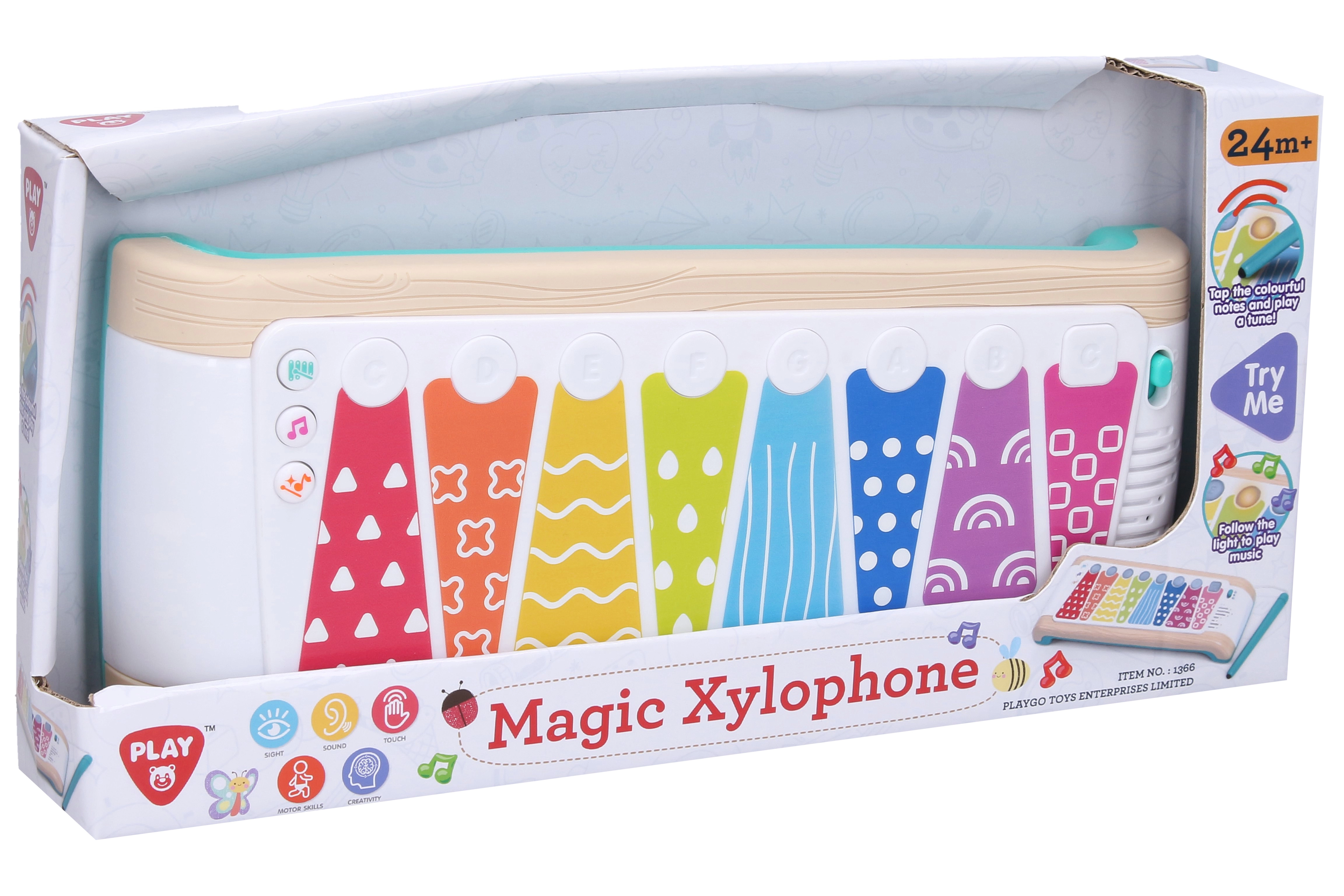 Grojimas ksilofonu skatina ritmo pojūtį, akių–rankų koordinaciją ir kantrybę. Mokomasis režimas motyvuoja vaikus sekti šviesos nurodymus ir gerina susikaupimą. Tinka vaikams nuo 12 mėnesių.