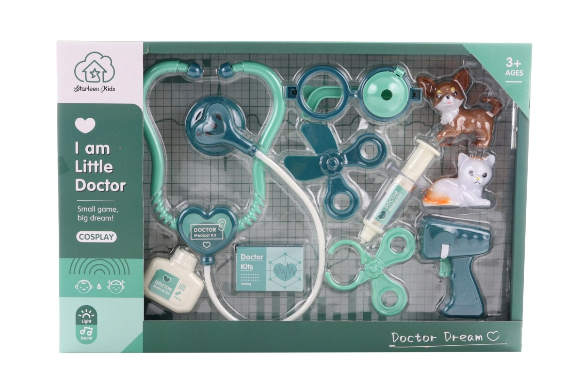 Šis veterinaro rinkinys pradžiugins kiekvieną mažą gyvūnėlių gydytoją. Vaikai gali žaisti gydydami šuniuką ir kačiuką, matuoti jiems temperatūrą ir rūpintis jais kaip tikri veterinarai. Dėl termometro su baterijomis žaidimas atrodo dar realesnis, o vaikai patirs daug smagių akimirkų.