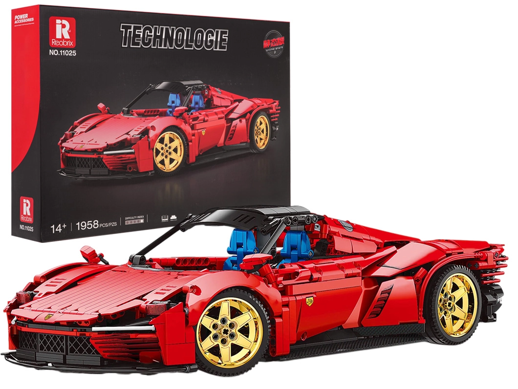 Raudono sportinio automobilio konstruktorius – puikus pasirinkimas visiems automobilių ir konstrukcinių iššūkių mėgėjams. Modelis turi atidaromas duris ir nuleidžiamą galinę dalį, kas suteikia autentiškumo.