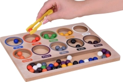 Medinė edukacinė mozaika su spalvotais rutuliukais – tai daugiau nei žaislas. Tai priemonė, padedanti lavinti smulkiąją motoriką bei akių ir rankų koordinaciją. Vaikai mokosi atpažinti skirtingas spalvas, pagrindinio skaičiavimo ir tvarkos, kas skatina jų kognityvinę raidą.