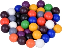 - 50 spalvotų rutuliukų (mėlyni, raudoni, žali, geltoni, balti, oranžiniai, violetiniai, pilki, juodi ir rudi),