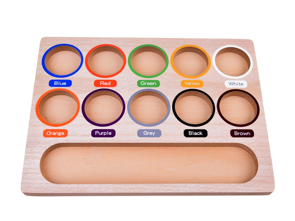 - medinė lenta su 11 angų ir spalvų pavadinimais anglų kalba,