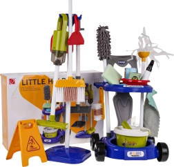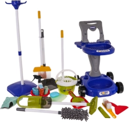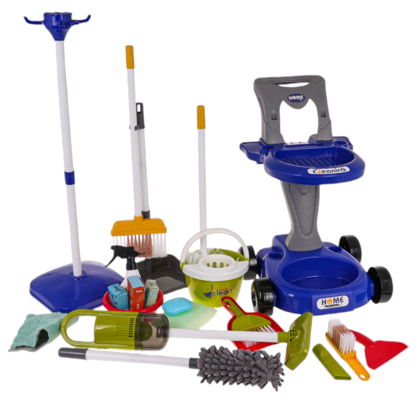 Linksmas valymo rinkinys vaikams nuo 3 metų turi 29 skirtingus įrankius ir priedus, tokius kaip šluota, šepetys ar veikiantis dulkių siurblys, kuris surenka smulkias šiukšles.
