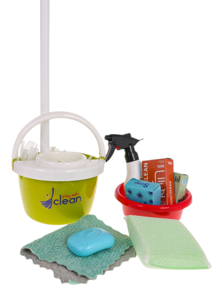 Iš viso 29 dalys, įskaitant šluotą, šepetį, kempinėles, purkštuvą, kibirėlį ir kitus naudingus priedus tikroviškam žaidimui.