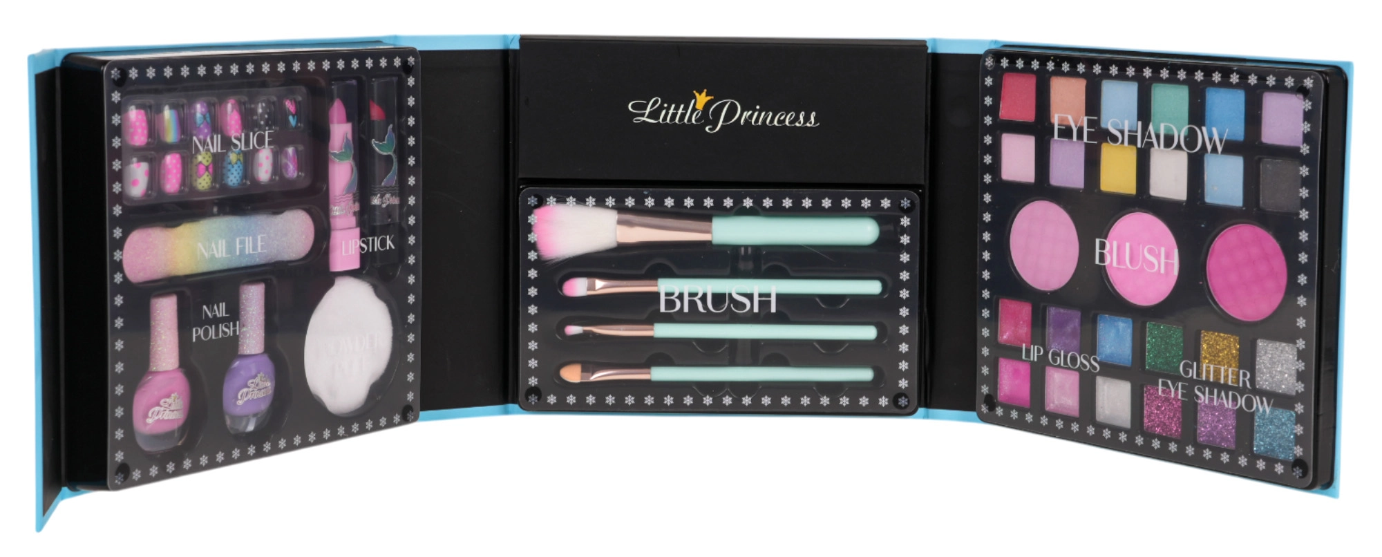 Pasakiškas makiažo rinkinys vaikams nuo 5 metų, lavinantis kūrybiškumą ir grožio pajautą. Rinkinyje – plati spalvų paletė, nagų lakai ir aksesuarai elegantiškoje išskleidžiamoje dėžutėje su Sniego princese. Kosmetika yra saugi vaikiškai odai ir lengvai nuplaunama.