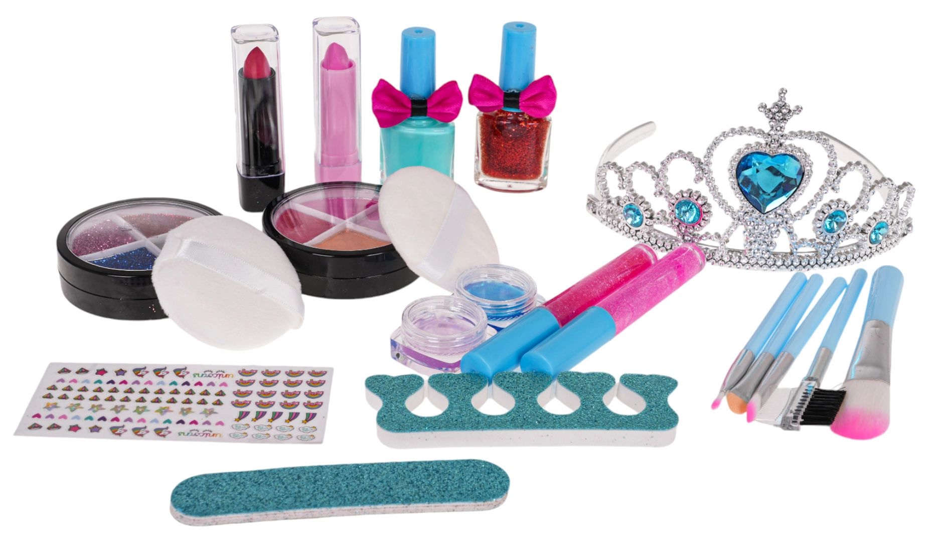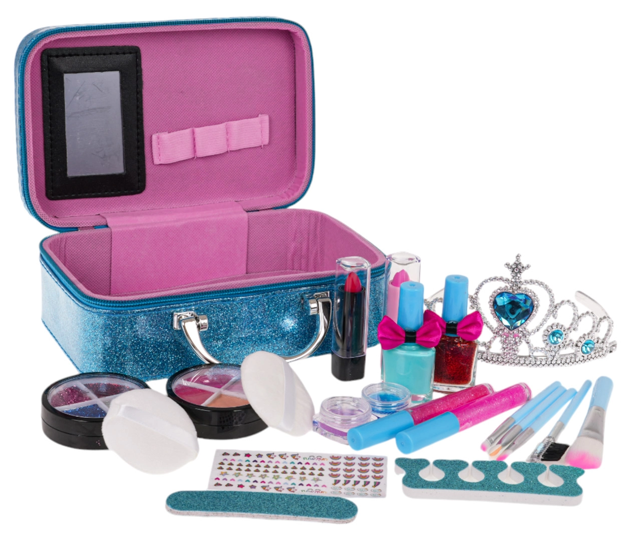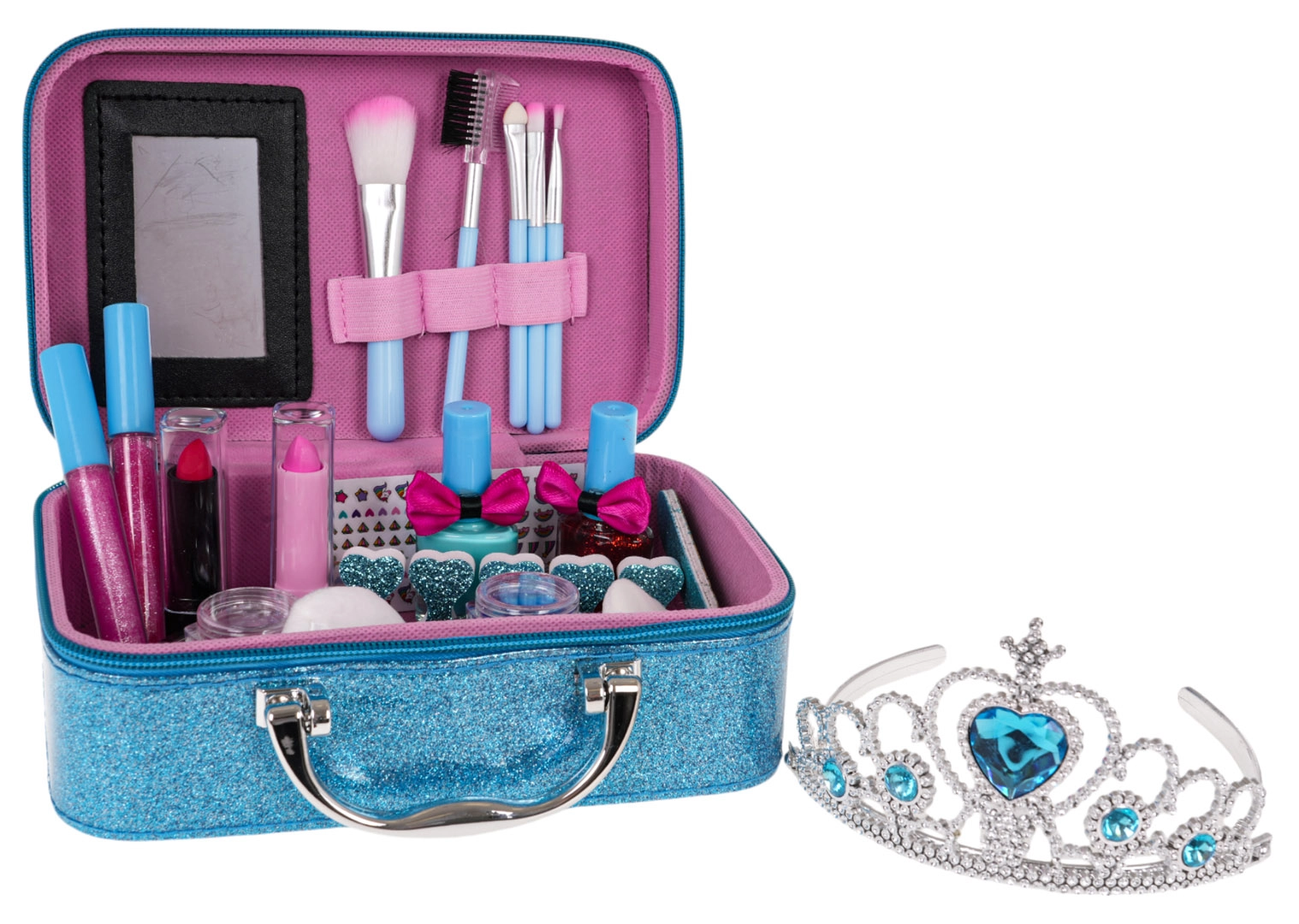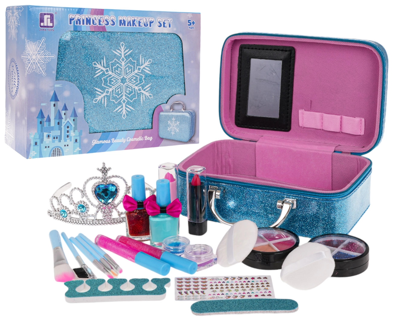 Rinkinio turinys nudžiugins gausia komplektacija: akių šešėliai (klasikiniai ir blizgūs), blizgiai ir lūpų dažai, nagų lakai ir praktiški nagų priežiūros įrankiai. Taip pat yra tiara tobulam princesiškam įvaizdžiui.