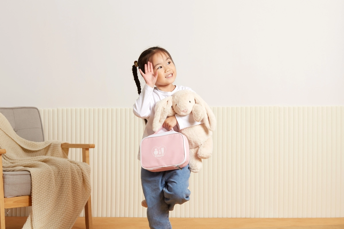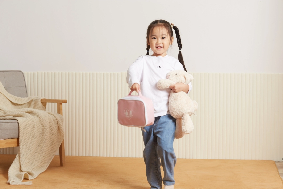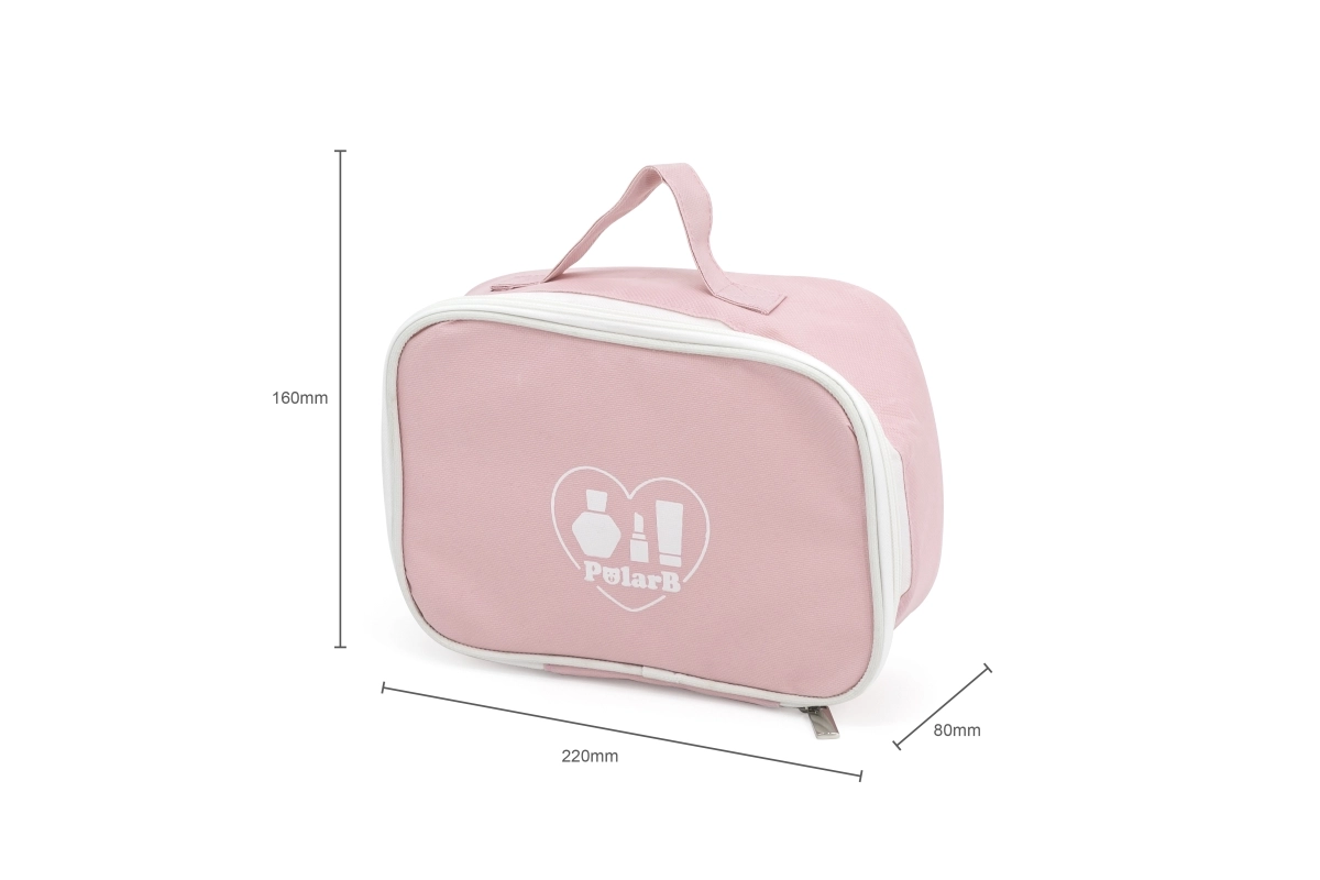 Rožinis tekstilinis PolarB dėklas tvarkingai sutalpina visus priedus ir palengvina jų nešiojimą kelionėse, pas senelius ar į svečius.