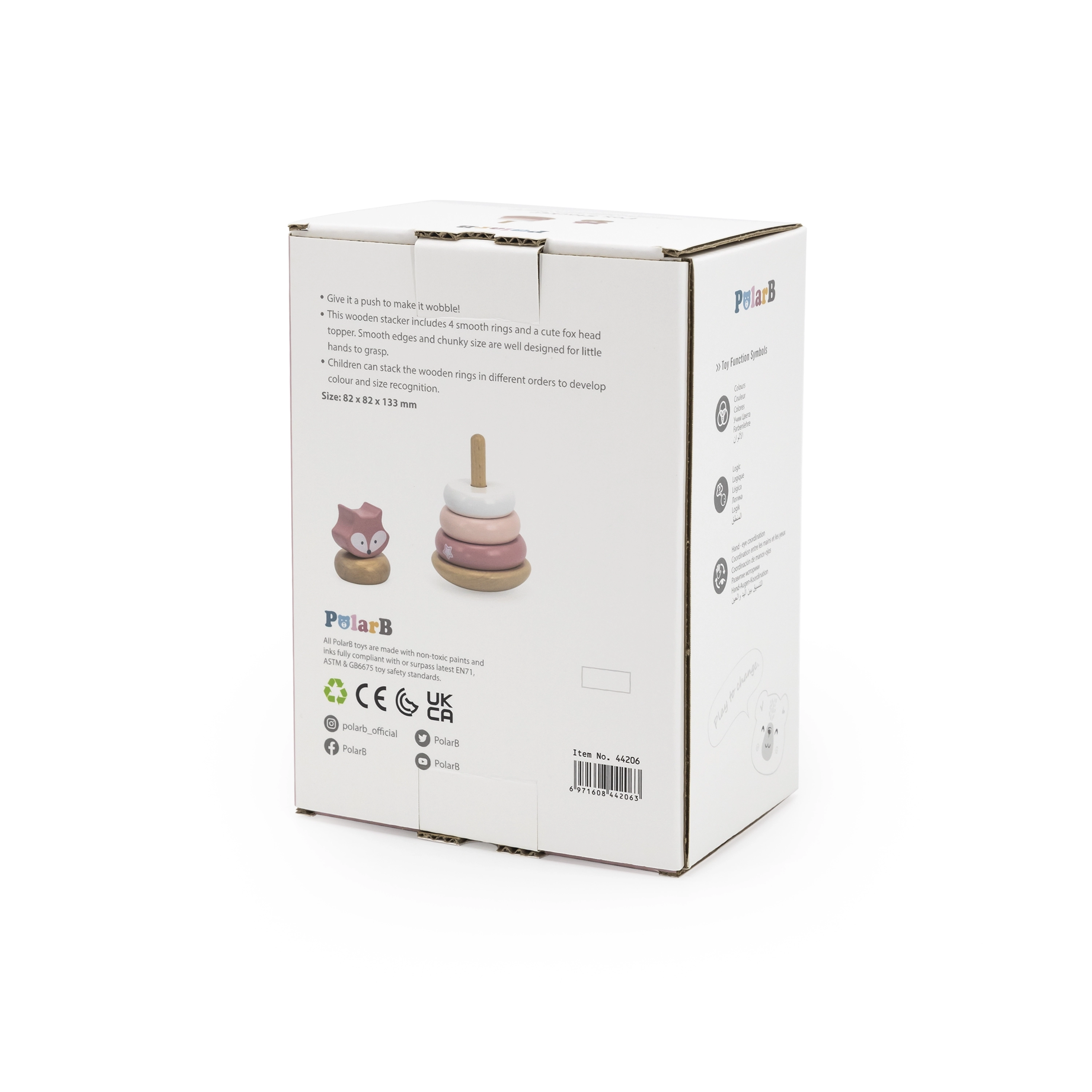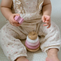 Saugios, glotniai šlifuotos detalės patogiai telpa vaiko rankoje, o medinė konstrukcija yra ekologiška ir patvari. Piramidė puikiai tinka pirmajam bokštelių statymui ir suteikia ramią, prasmingą pramogą be ekranų.