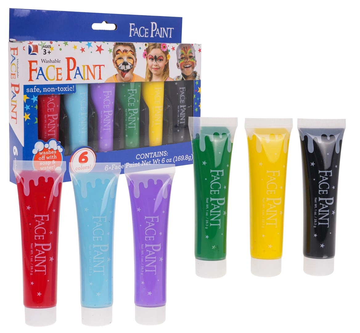 Pagyvinkite bet kokį vakarėlį ar karnavalą su patogiu veido dažymo rinkiniu vaikams nuo 3 metų. Dažai yra netoksiški, saugūs vaikų odai ir lengvai nuplaunami vandeniu ir muilu. Pakuotėje rasite 6 ryškias spalvas begaliniam kūrybiniam smagumui.