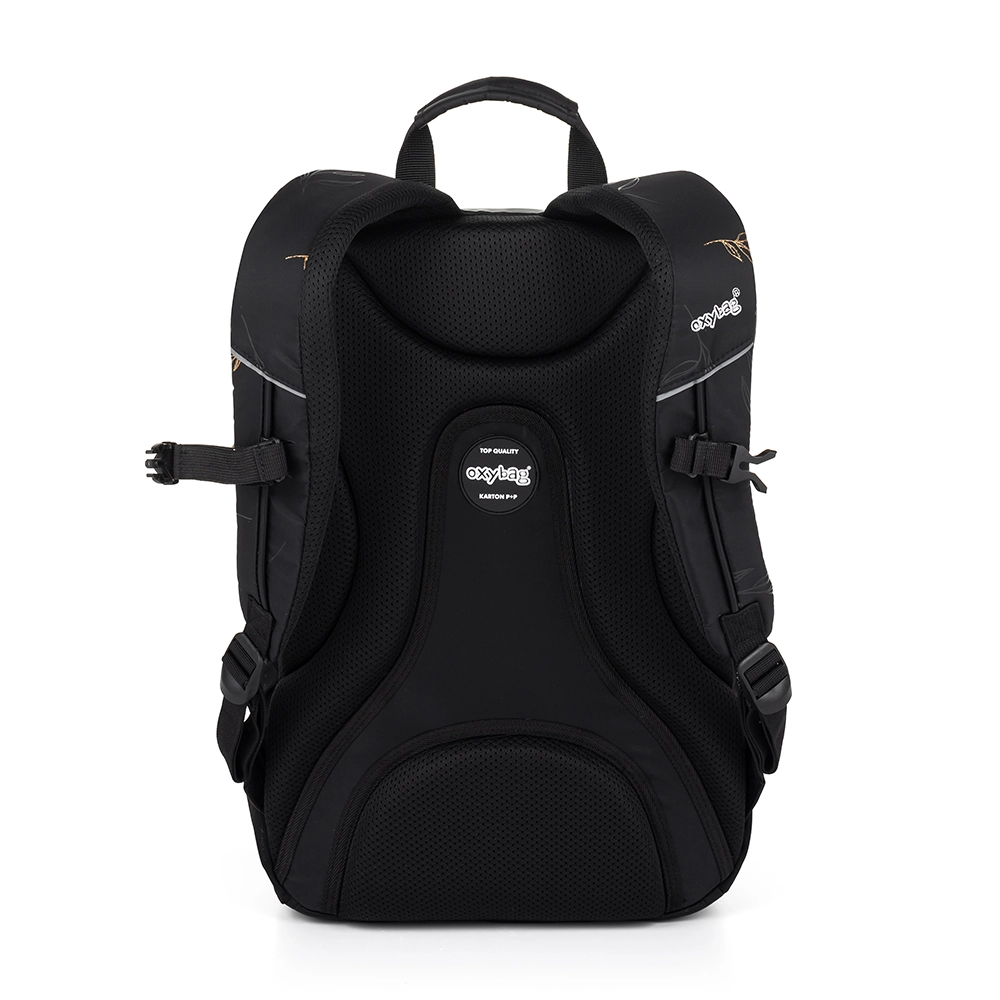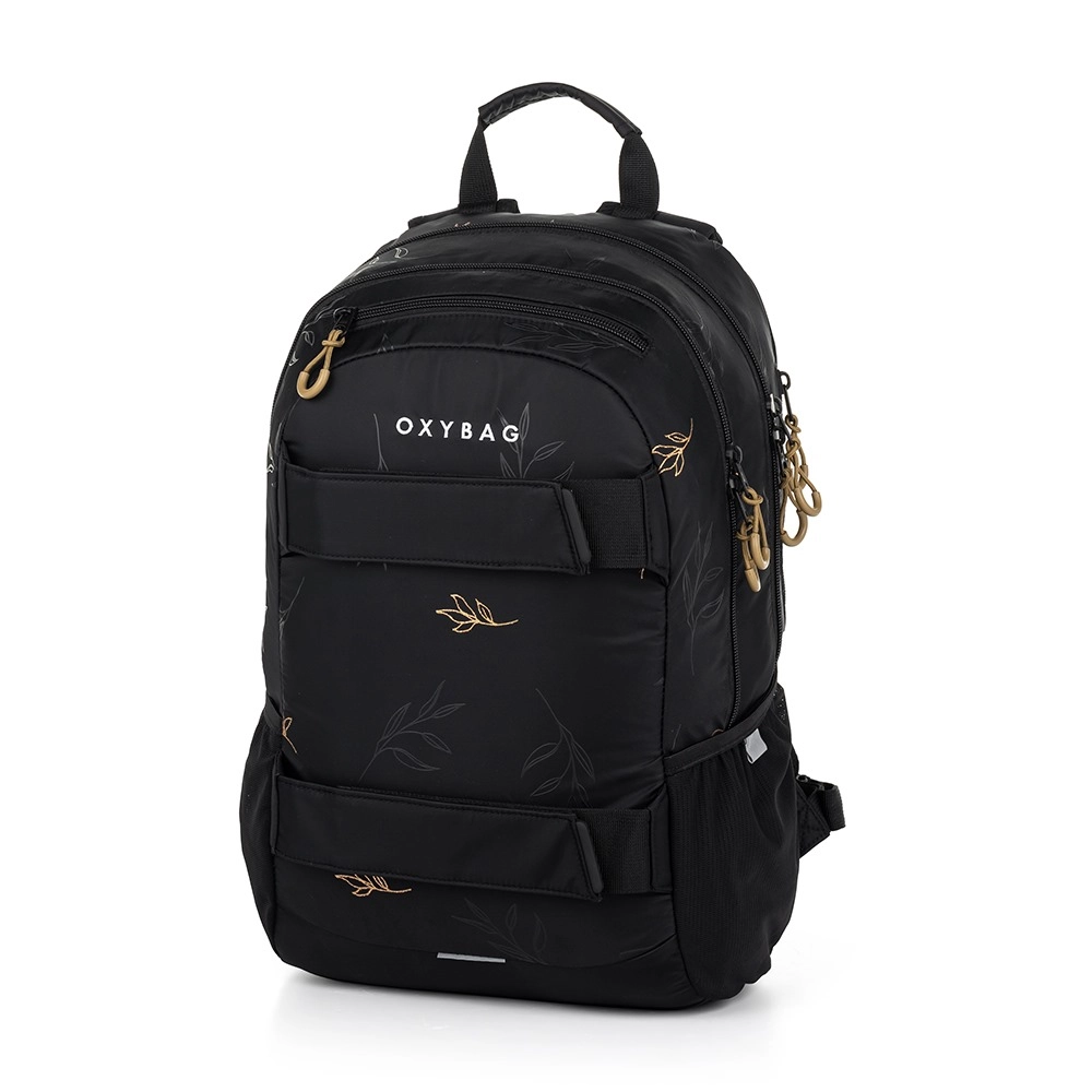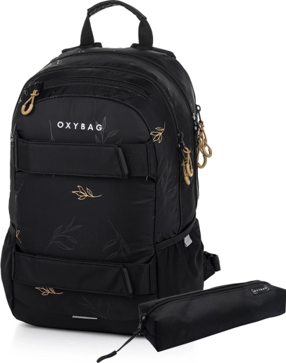 Stilingas ir praktiškas rinkinys susideda iš mokinių kuprinės ir rašymo priemonių dėklo. Kuprinė Oxy Sport Flowers sukurta patogiam nešiojimui dėl ergonomiškai suformuotos nugarėlės ir reguliuojamų paminkštintų pečių diržų. Ji turi dvi pagrindines sekcijas, mažą priekinę kišenėlę ir paslėptą kišenę nugarėlėje. Viduje yra kišenė nešiojamajam kompiuteriui, karabinas raktams ir mažesnės kišenės smulkmenoms. Šoninė kišenė buteliui ir atšvaitiniai elementai didina kuprinės praktiškumą. Kuprinė tinkama moksleiviams ir suaugusiesiems įvairiai veiklai.
