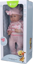 Žavus kūdikis minkštame kombinezone, 40 cm dydžio, idealiai tinka kiekvienai mažai mamytei. Puikus žaislas vaikų vaizduotei ir įgūdžiams lavinti.