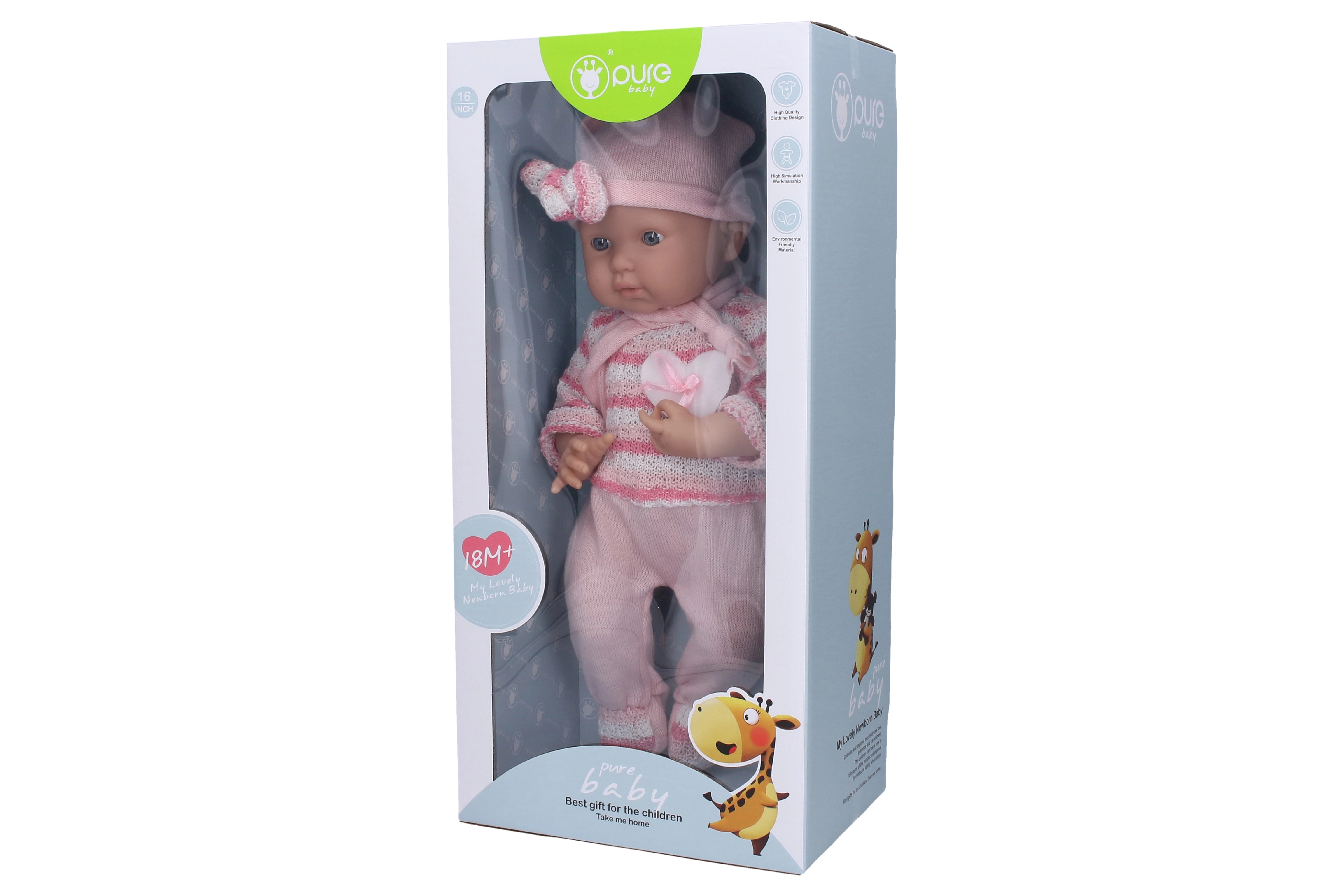 Atraskite žaidimų ir fantazijos pasaulį su šiuo švelniu kūdikiu, apsirengusiu minkštu ir patogiu kombinezonu. Šis kūdikis yra tobulas draugas kiekvienam vaikui, svajojančiam apie rūpestį ir globą.