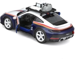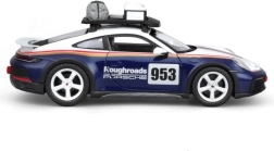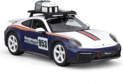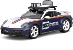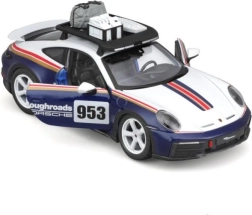 Pradžiuginkite save ar vaikus realistiniu Porsche 911 Dakar modeliu 1:24 masteliu. Šis die-cast modelis mėlynos, baltos ir raudonų juostų spalvų derinyje išsiskiria tiksliomis proporcijomis, Roughroads emblemos ženklais ir ikonišku numeriu 953. Metalinė konstrukcija su plastikinėmis detalėmis užtikrina patvarumą ir ištikimą atitikimą tikram automobiliui.