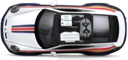 Sportinė dažymo schema, lenktyninės juostos ir numeris 953 paverčia modelį iškart atpažįstamu eksponatu vitrinai ir žaidimams.