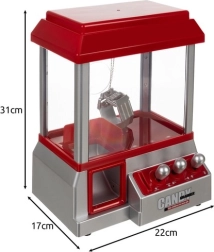 Tvirtas grandinėle pritvirtintas griebtuvas patikimai sugriebia smulkius saldumynus ar mažus žaisliukus. Laimė nukrenta į raudonai apšviestą dėžutę – efektas, kurį vaikai dievina.