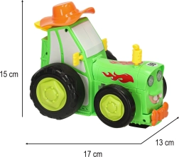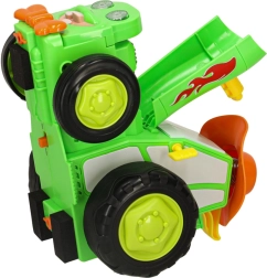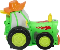 Traktorius groja linksmą muziką ir yra labai lengvai valdomas naudojant valdiklį.