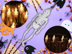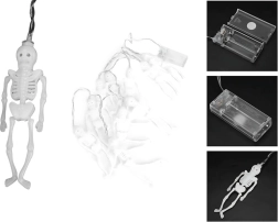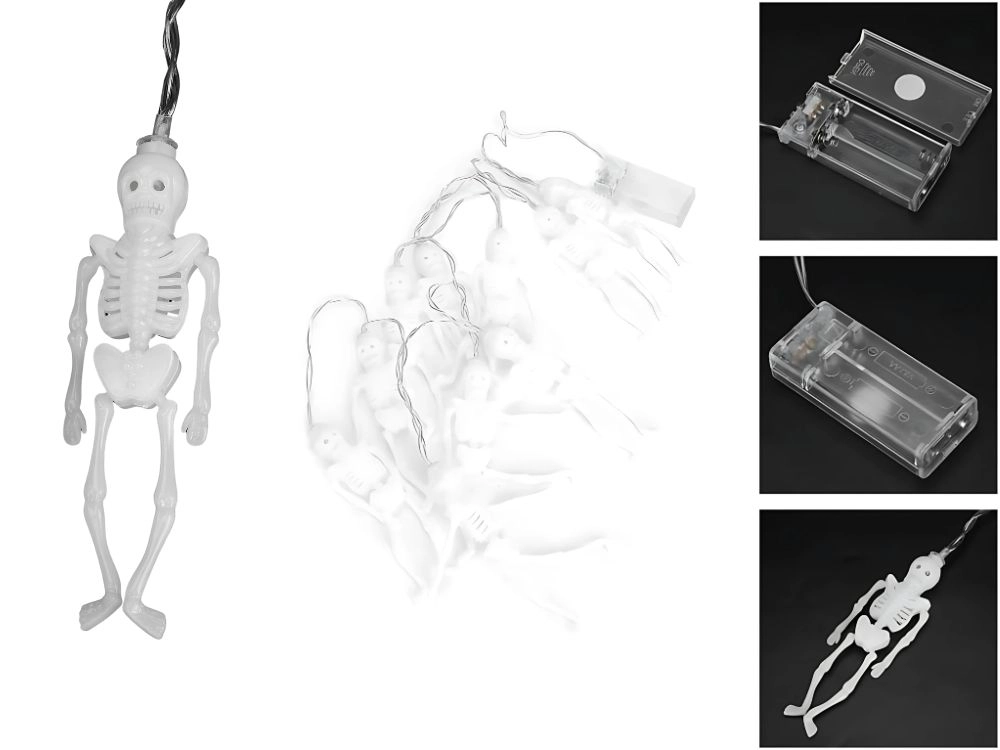 Stilinga šviesinė dekoracija, kuri akimirksniu pavers interjerą ar apsaugotą eksterjerą paslaptinga heloviniška aplinka. Kiekvienas iš 10 miniatiūrinių skeletų turi atskirą LED diodą, todėl šviesa tolygiai pasiskirsto per visą girliandos ilgį. Šiltai balta spalva kuria malonią, tačiau šiurpiai žėrinčią atmosferą.