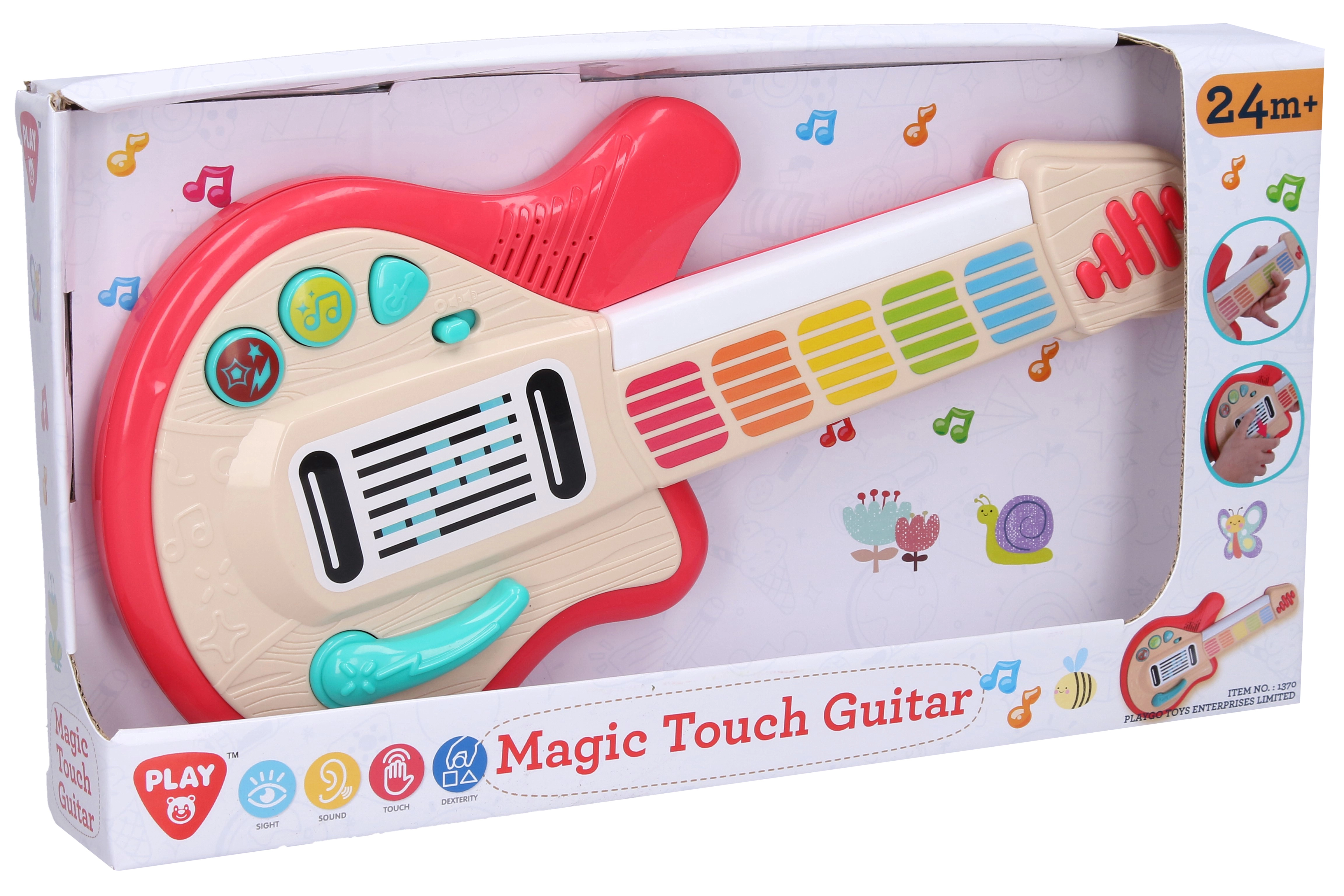 Linksma vaikiška Playgo gitara su liečiamomis stygomis suteikia šviesos ir garso efektus, paprastą valdymą ir tris garso lygio pakopas. Gitarą galima groti atskirais natų tonais, ji siūlo melodijas ir elektrinį iškraipymą tikram roko potyriui. Baterijos 3× AAA yra rinkinyje, tad galite groti iškart po išpakavimo.
