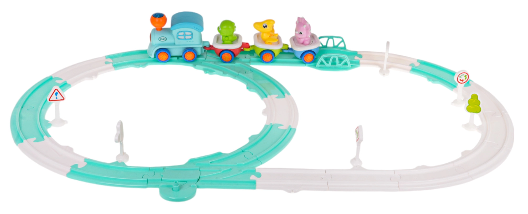33 dalių rinkinys pagamintas iš kokybiško plastiko ryškiomis spalvomis, kurios kviečia žaisti ir padeda lavinti smulkiąją motoriką, vaizduotę ir spalvų suvokimą. Lengvai jungiami bėgiai, kelio ženklai ir kiti priedai padeda vaikams žaismingai pažinti transporto pasaulį.