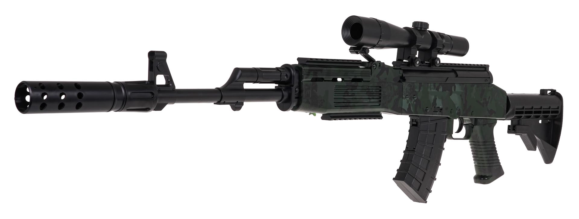 Gelinis SKS blasteris suteikia autentišką išvaizdą ir puikią žaidimo patirtį. Dėl galimybės rinktis tarp rankinio ir automatinio režimo lengvai prisitaikysite žaidimo stilių. Optika su didinamuoju stiklu ir tolygiu priartinimo reguliavimu pagerina taiklumą ir pramogą taikantis į taikinį.