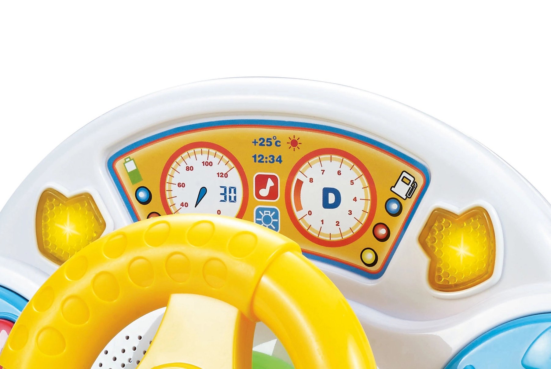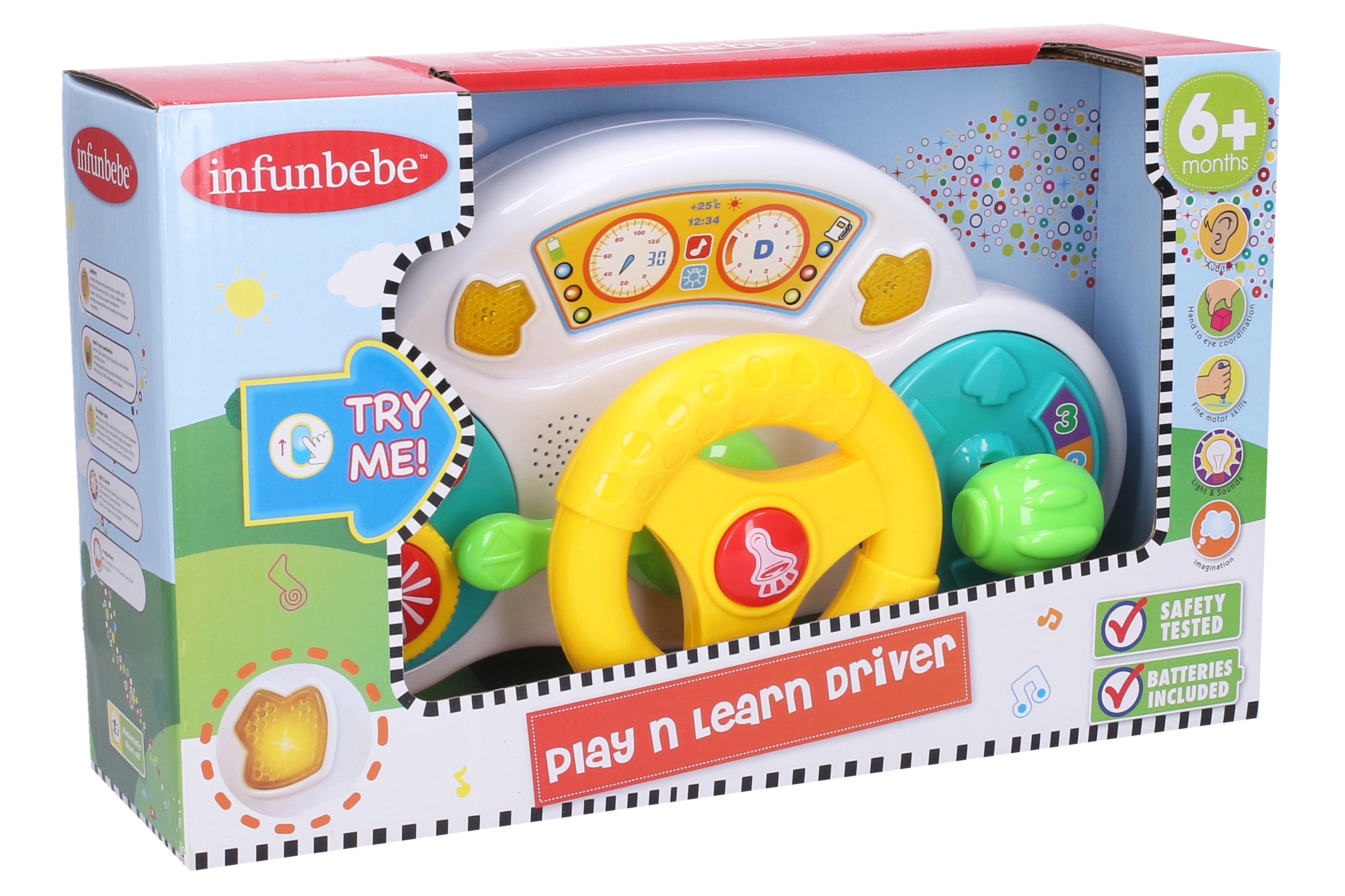 Interaktyvus vairas – puikus žaislas vaikams, kurie mėgsta automobilius ir vairavimą. Įvairūs mygtukai, svirtelės ir jungikliai padeda vaikams atskirti spalvas, formas ir garsus, tuo pačiu lavinant akių–rankų koordinaciją. Šviesos ir garso efektai išlaiko dėmesį ir stiprina jutiminį suvokimą.