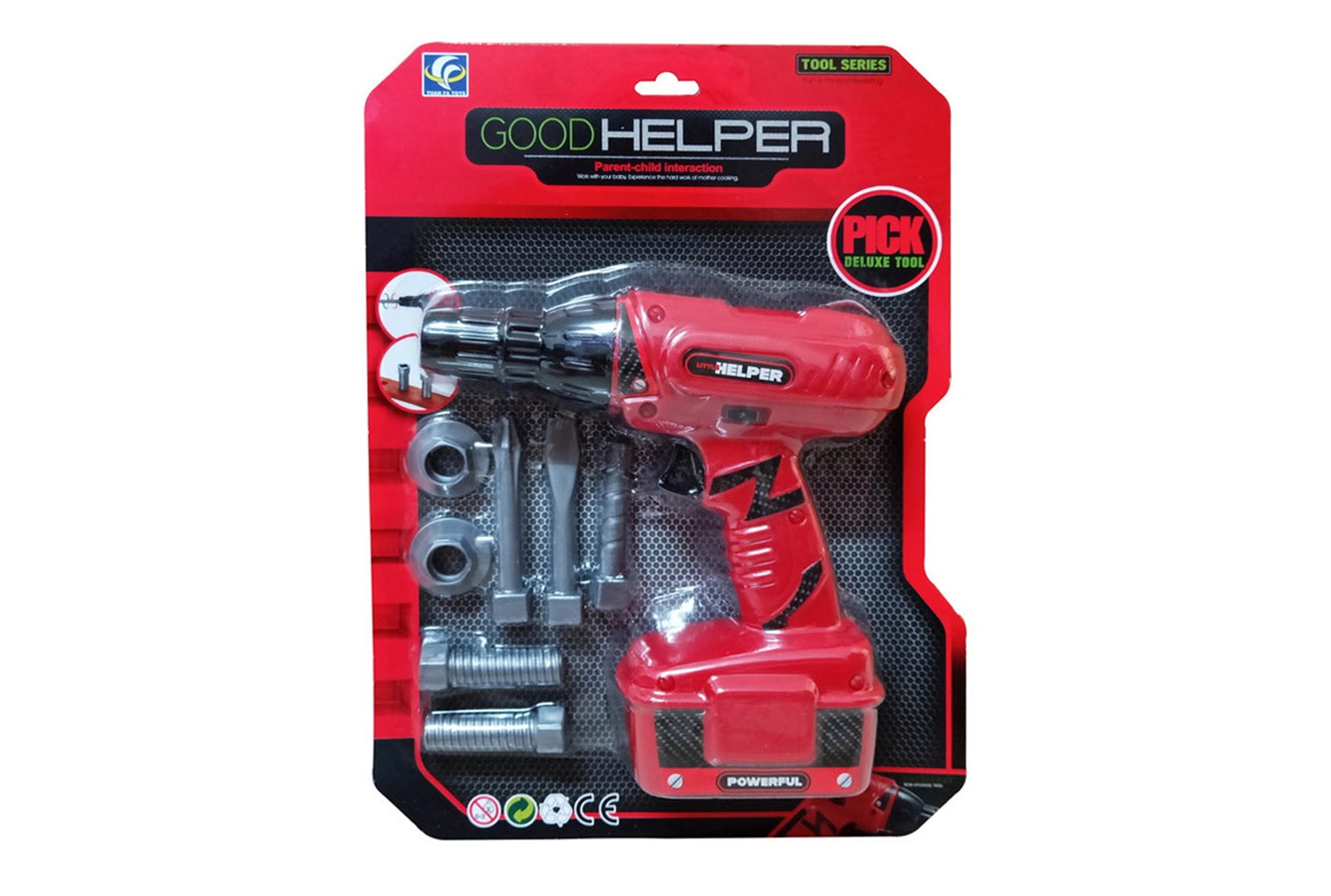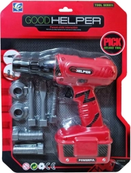 Šiame rinkinyje yra realistiškas akumuliatorinis gręžtuvas, kuris ne tik atrodo kaip tikras, bet ir paspaudus mygtuką sukasi bei skleidžia autentiškus gręžimo garsus. Yra keičiamieji grąžtai ir varžtai, kas suteikia žaidimui dar daugiau tikroviškumo.