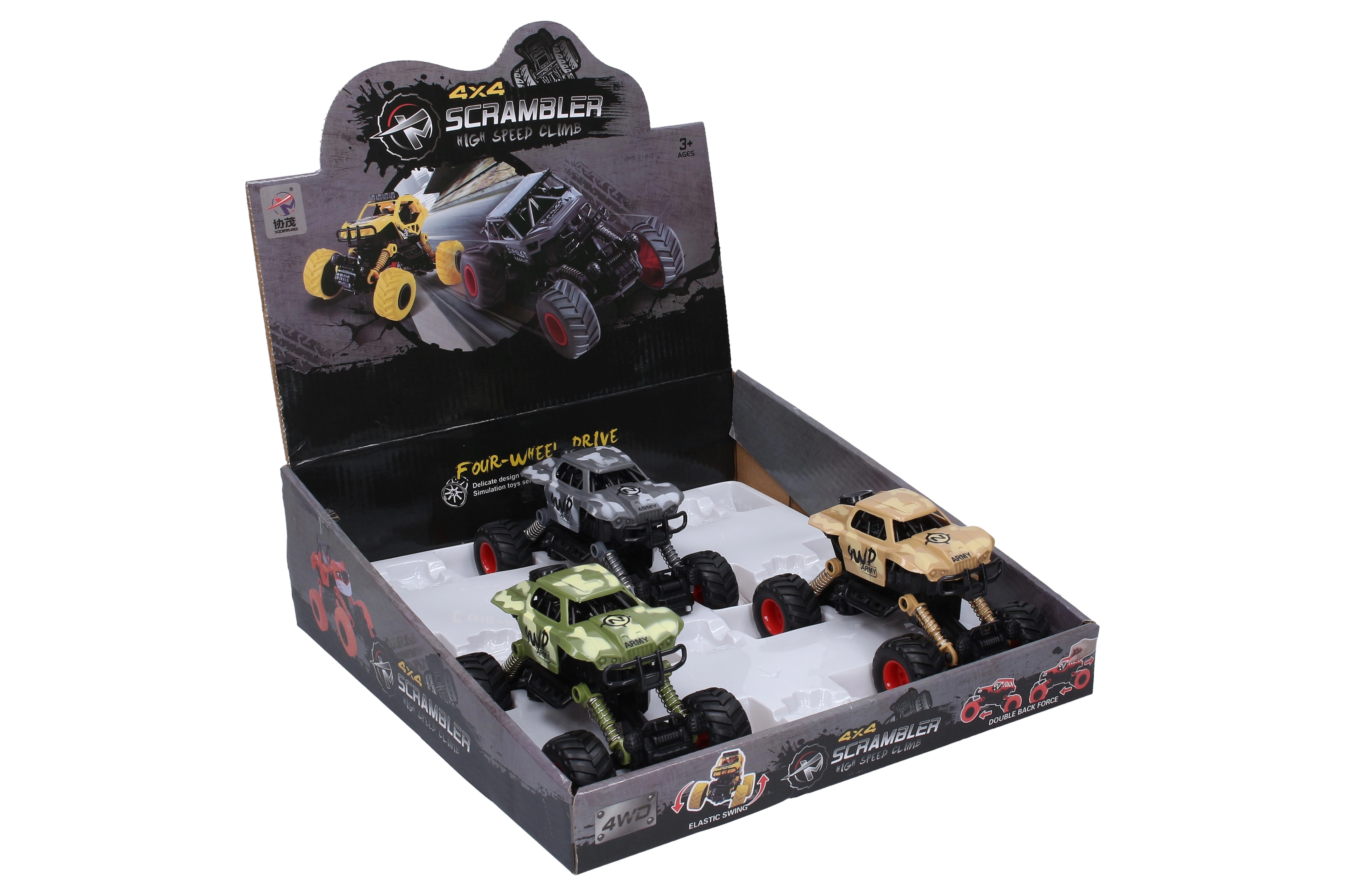 Mėgaukitės gausia veiksmo doze su bekelės attraukiamu automobiliu, kuris dėl attraukiamo mechanizmo greitai šauna pirmyn ir įveikia nelygumus. Amortizacija suteikia daugiau realizmo ir užtikrina sklandesnį važiavimą per kliūtis.