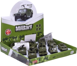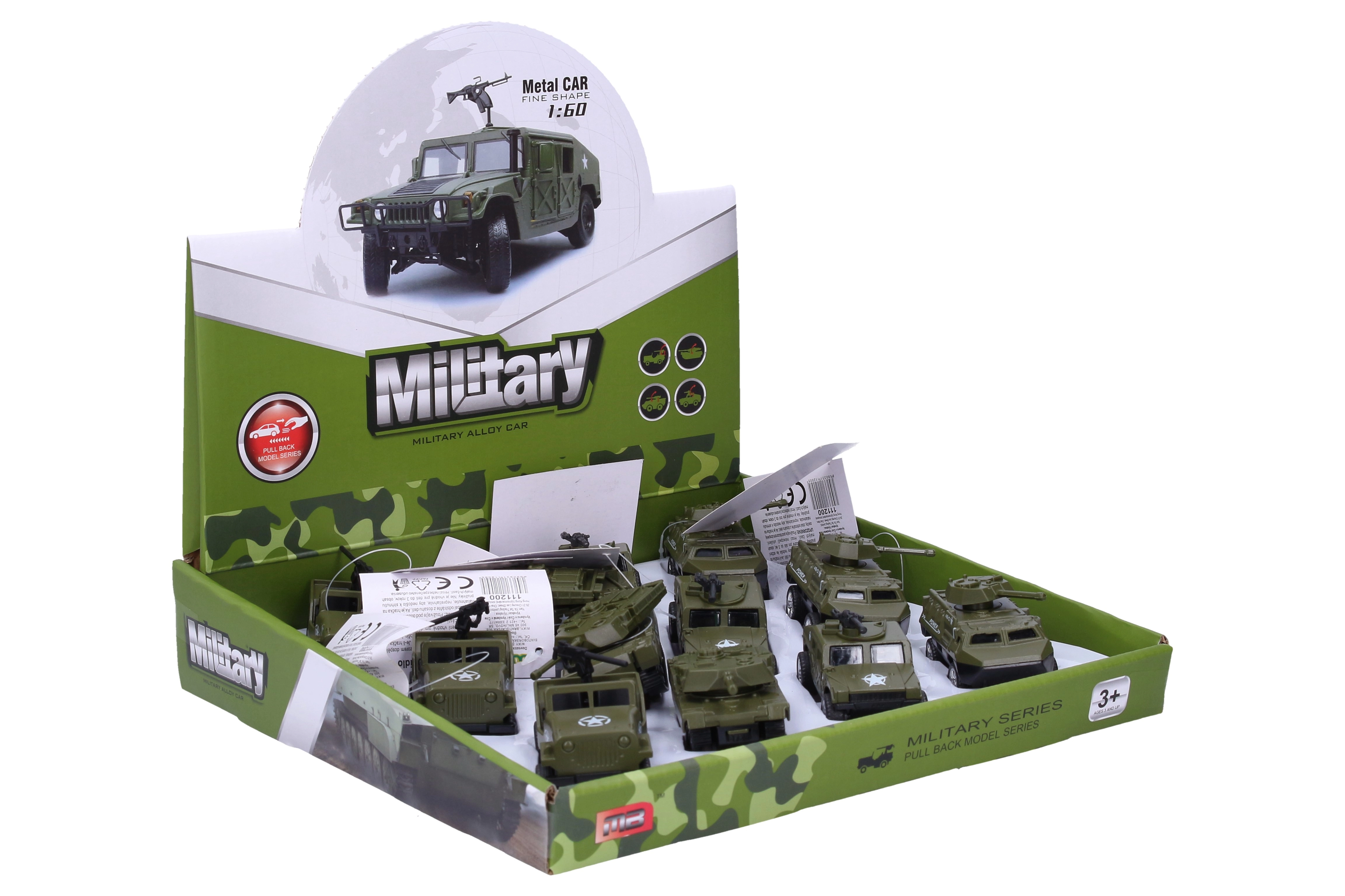 Mažas metalinis karinis žaislinis automobilis pradžiugins kiekvieną mažą kareivį. Rinkitės iš kelių variantų ir praplėskite savo bazę. Žaislas yra patvarus, kompaktiško 8 cm dydžio ir tinkamas nuo 3 metų. Metalinis korpusas, realistiškas karinis dizainas ir įvairūs modeliai rinkimui ir žaidimams.