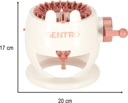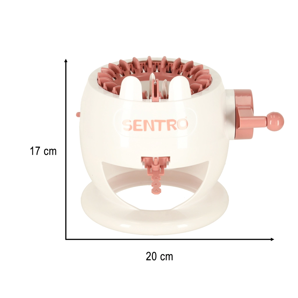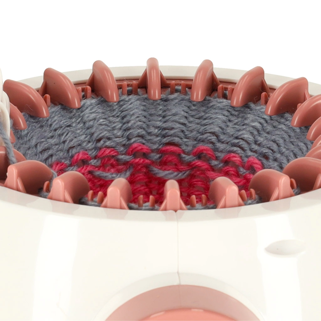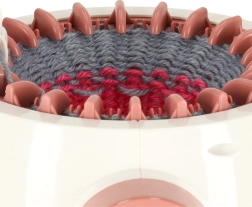 Dėl 22 adatų staklės įveikia tiek apvalius, tiek lygus mezginius. Kompaktiški matmenys 20 × 17 cm ir vidinis skersmuo 12,5 cm tinka greitiems projektams, tokiems kaip kepurės, antbačiai, šalikai ar vaikų aksesuarai. Pakuotėje yra ir 2 siūlų kamuoliukai, adata bei nertas kabliukas patogiam užtvirtinimui ir gaminių užbaigimui.