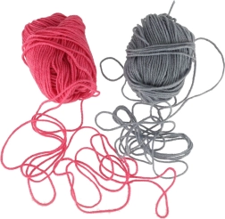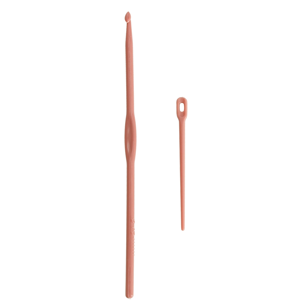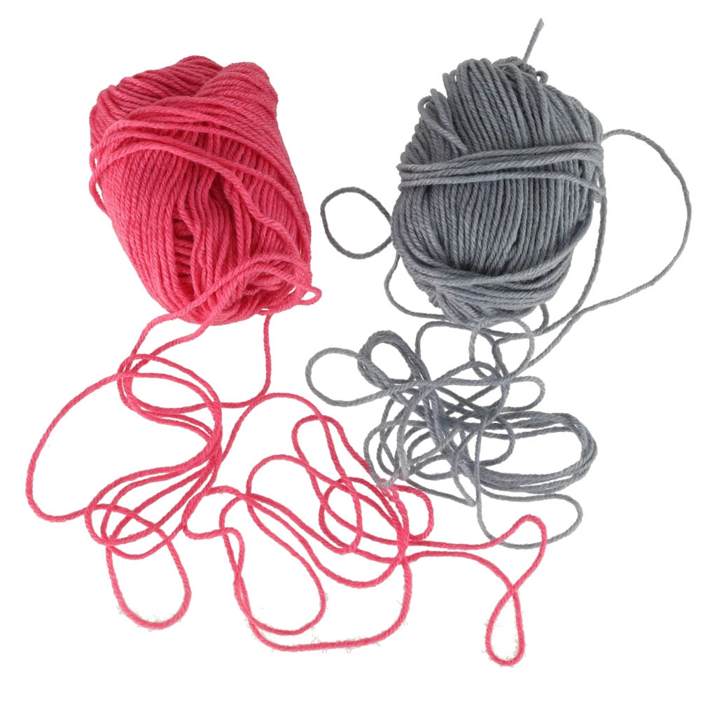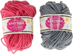 Pradėkite iškart: 2 siūlų kamuoliukai, adata, kabliukas ir neslystančios pagalvėlės stabilumui darbo metu.