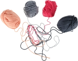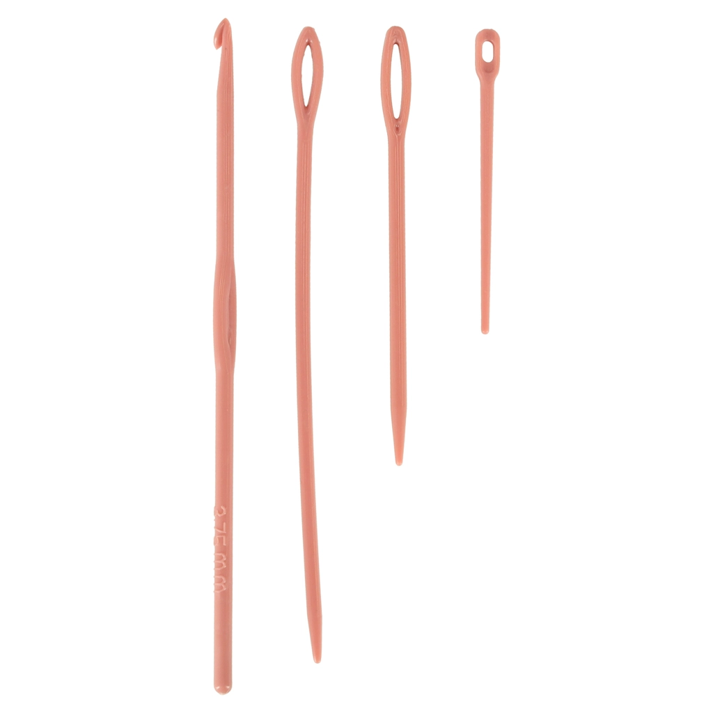 Rinkinyje rasite 4 siūlų kamuoliukus, adatų rinkinį ir vąšelį lengvam kraštų užbaigimui ir susiuvimui.