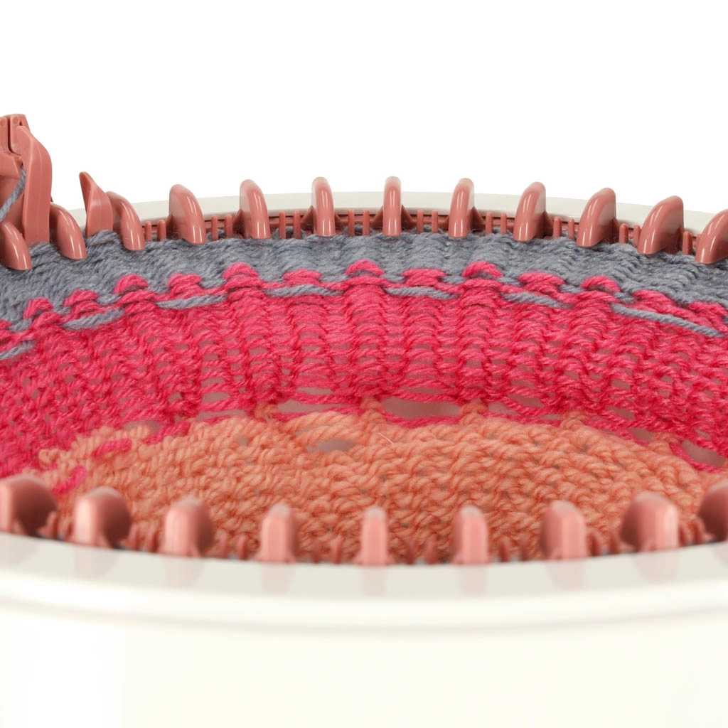 Šis rankinis mezgimo aparatas – puikus pasirinkimas pirmiesiems žingsniams į rankdarbių pasaulį. Dėl 48 adatų lengvai numegsite kepures, šalikus ir movas – tiek ratu, tiek kaip plokščią panelę. Pasukamas rankinis rankenėlės mechanizmas užtikrina sklandų darbą be baterijų.