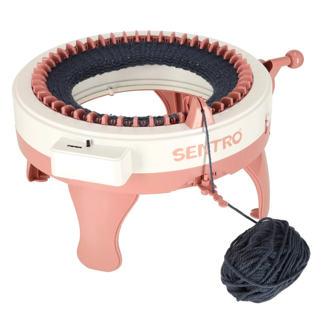 Rankinis valdymas su rankenėle užtikrina sklandų ir saugų mezgimą bet kur – idealiai tinka vaikams ir pradedantiesiems.