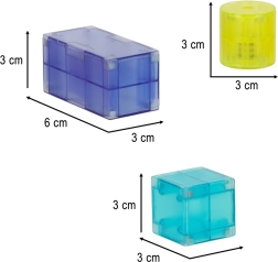 Permatomos detalės daugeliu formų ir spalvų skatina kūrybišką statymą – nuo paprastų modelių iki sudėtingų 3D konstrukcijų.