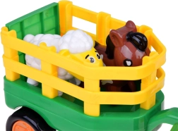 Geltonai žalia priekaba atsidaro, kad būtų patogu krauti ir iškrauti. Vaikai gali vežti arklį ir avį bei kurti savo ūkio istorijas.