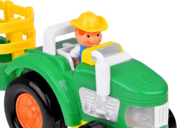 Paverskite kambarį mažu ūkiu su spalvingu traktoriumi ir nuimama priekaba. Tvirtas plastikas, lengvas suėmimas ir interaktyvūs elementai su garsais bei šviesomis skatina fantaziją, pasakojimų kūrimą ir smulkiosios motorikos raidą.