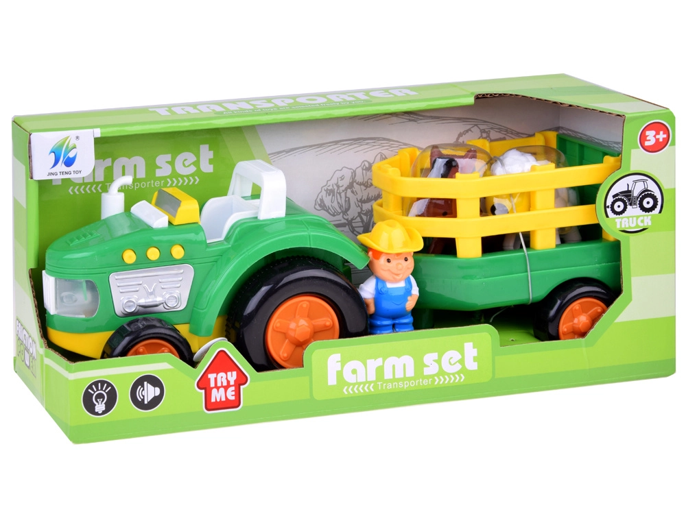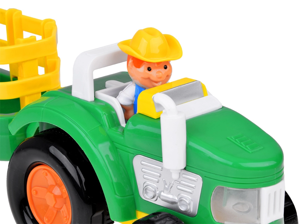 Rinkinyje rasite: traktorių, priekabą, ūkininko figūrėlę, avį ir arklį. Maitinimas: 3× AG13 (nepridedama).