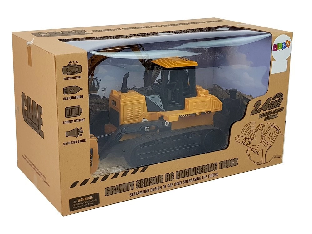 Smagus ir realistiškas 1:28 mastelio RC buldozeris su vikšrais siūlo valdymą rankos gestais per apyrankę, 6 kanalų funkcijas, USB įkrovimą ir statybos garsus. Idealu mažiesiems inžinieriams – lavina smulkiąją motoriką, koncentraciją ir loginį mąstymą.