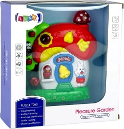 Interaktyvus namelys puikiai tinka kasdieniam žaidimui ir vakarinei ramybei. Gamtos garsai kūdikį nuramina ir nuteikia miegui, o gyvūnėliai skleidžia savo charakteringus garsus. Dukart paspaudus įsijungia muzikinis fonas, o už vaizdinius įspūdžius atsako mažas šviečiantis musmirės grybukas ir lemputė ant stogo.