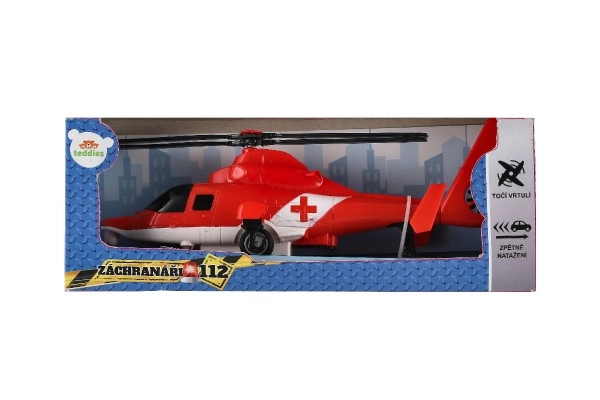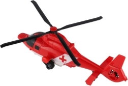 Raudonas plastikinis gelbėjimo sraigtasparnis pradžiugins visus mažus pilotus ir ugniagesius. Dėl mechaninės atgalinio įtempimo pavaros jis šauna į priekį, o jo sraigtai ima suktis dar realesniam žaidimui. Ideali priemonė vaizduotei lavinti ir kurti gelbėjimo misijų scenarijus. Realistiškas atlikimas, atgalinis įtempimas, besisukantys sraigtai ir patvarus plastikas užtikrins valandas pramogų.