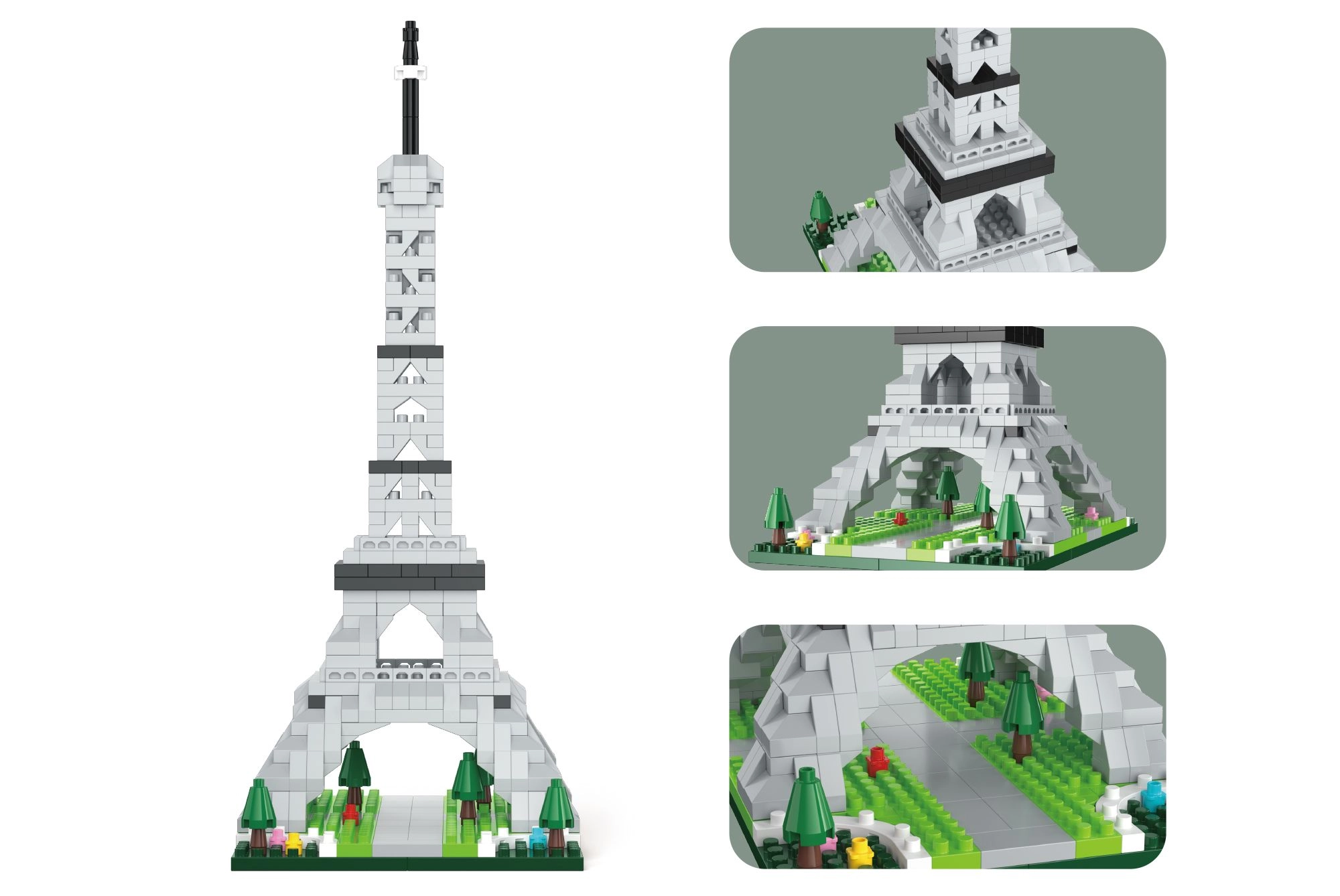 - 538 detalės: Išsamus rinkinys unikaliam Eifelio bokšto modeliui sukurti.