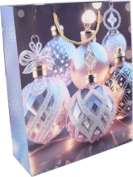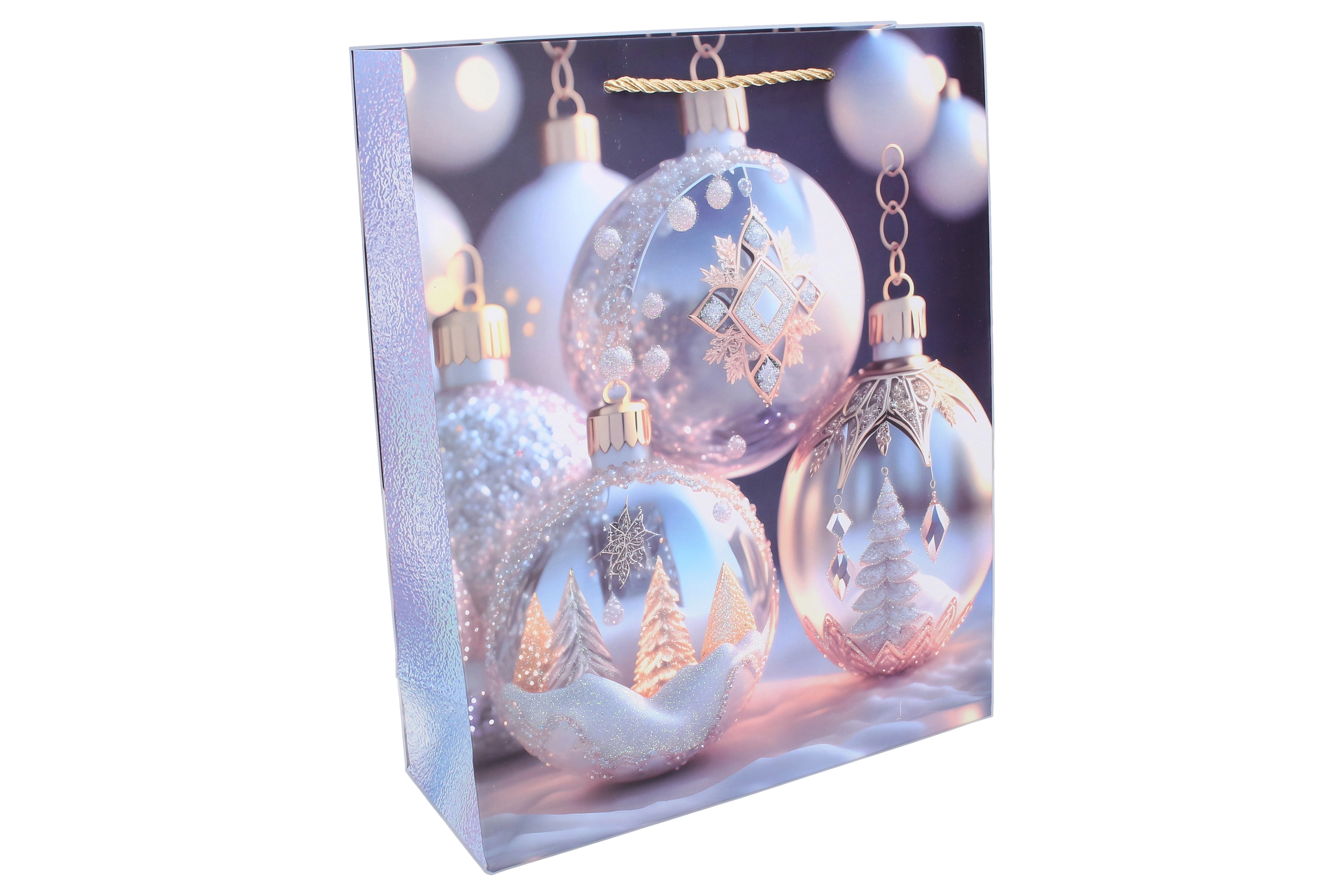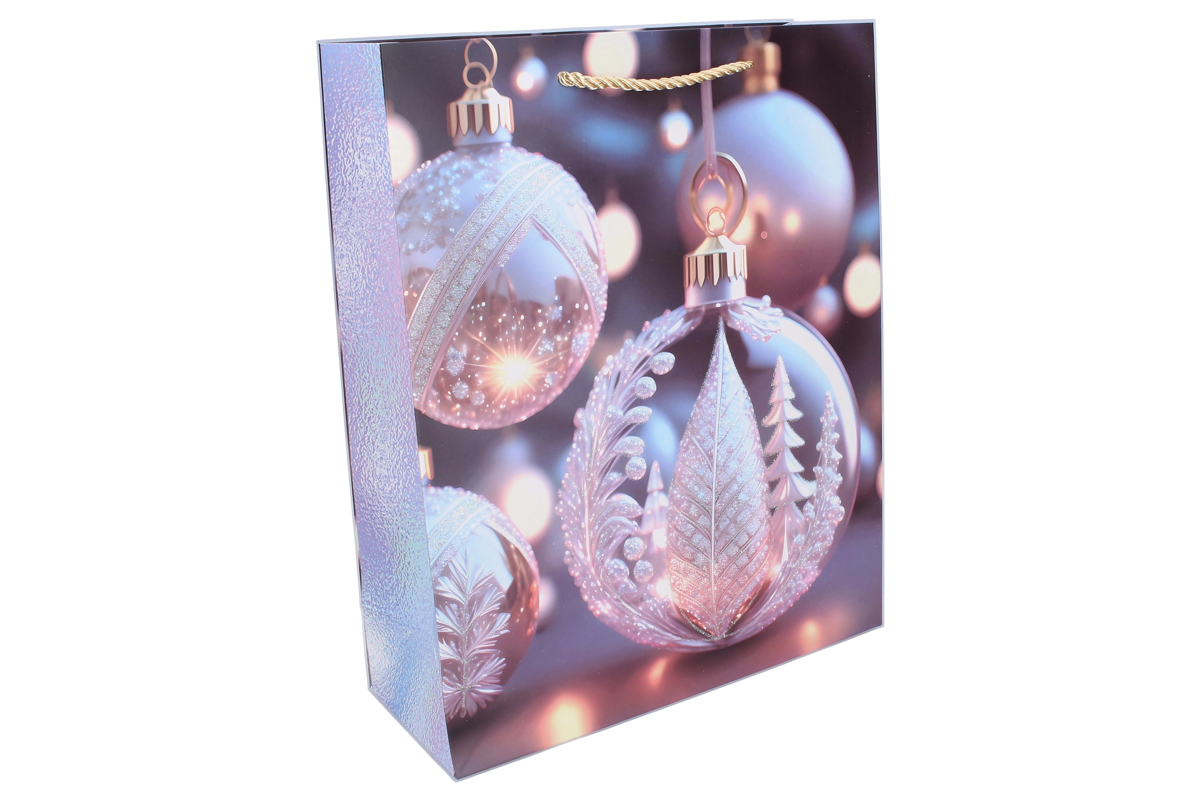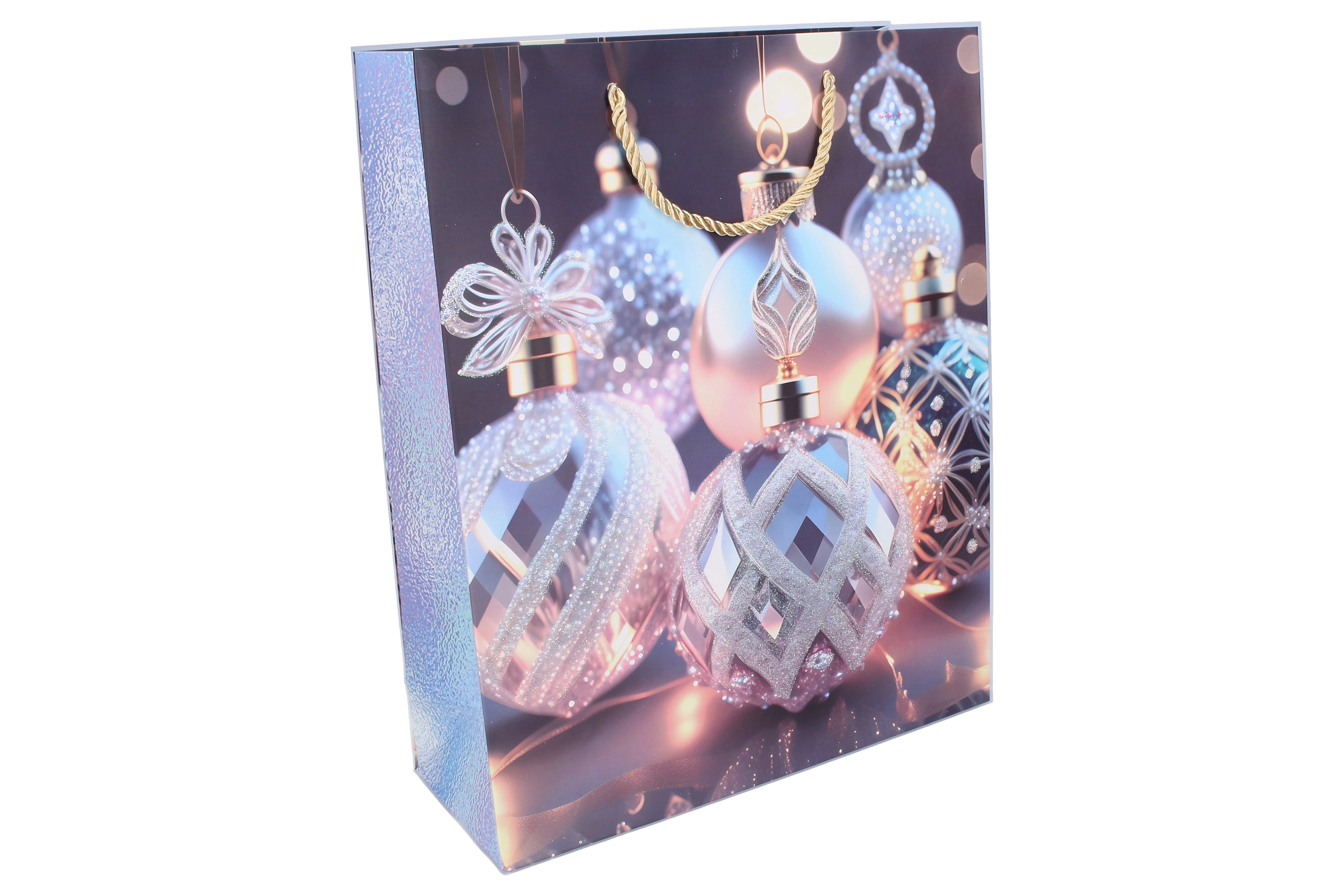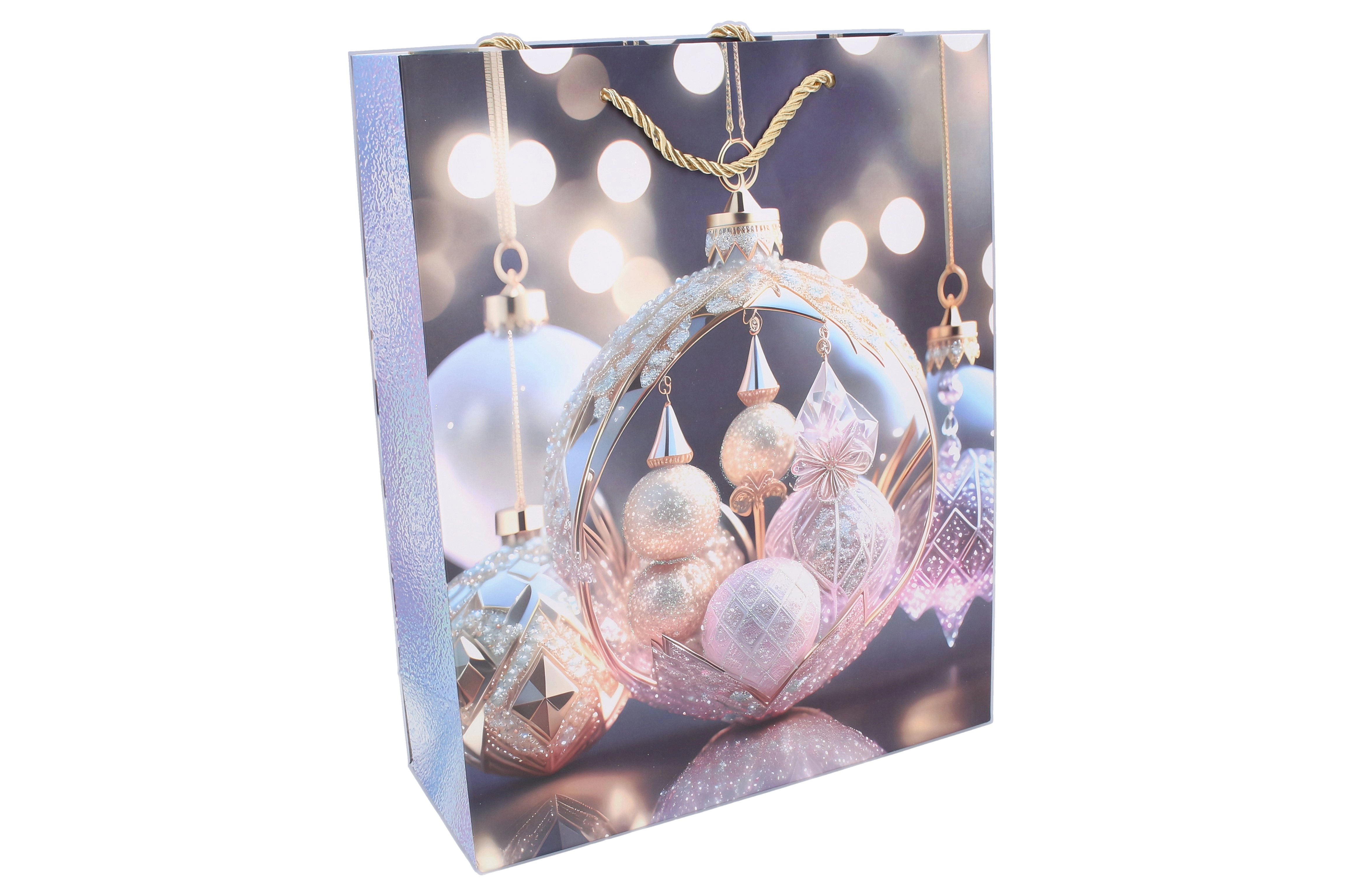 Stilingas kalėdinis dovanų maišelis, M dydžio, matmenys 26 × 32 × 10 cm – idealus elegantiškam dovanų įpakavimui. Siūlo tvirtą atlikimą, praktinius matmenis ir šventinį dizainą net 4 variantuose kiekvienai progai.